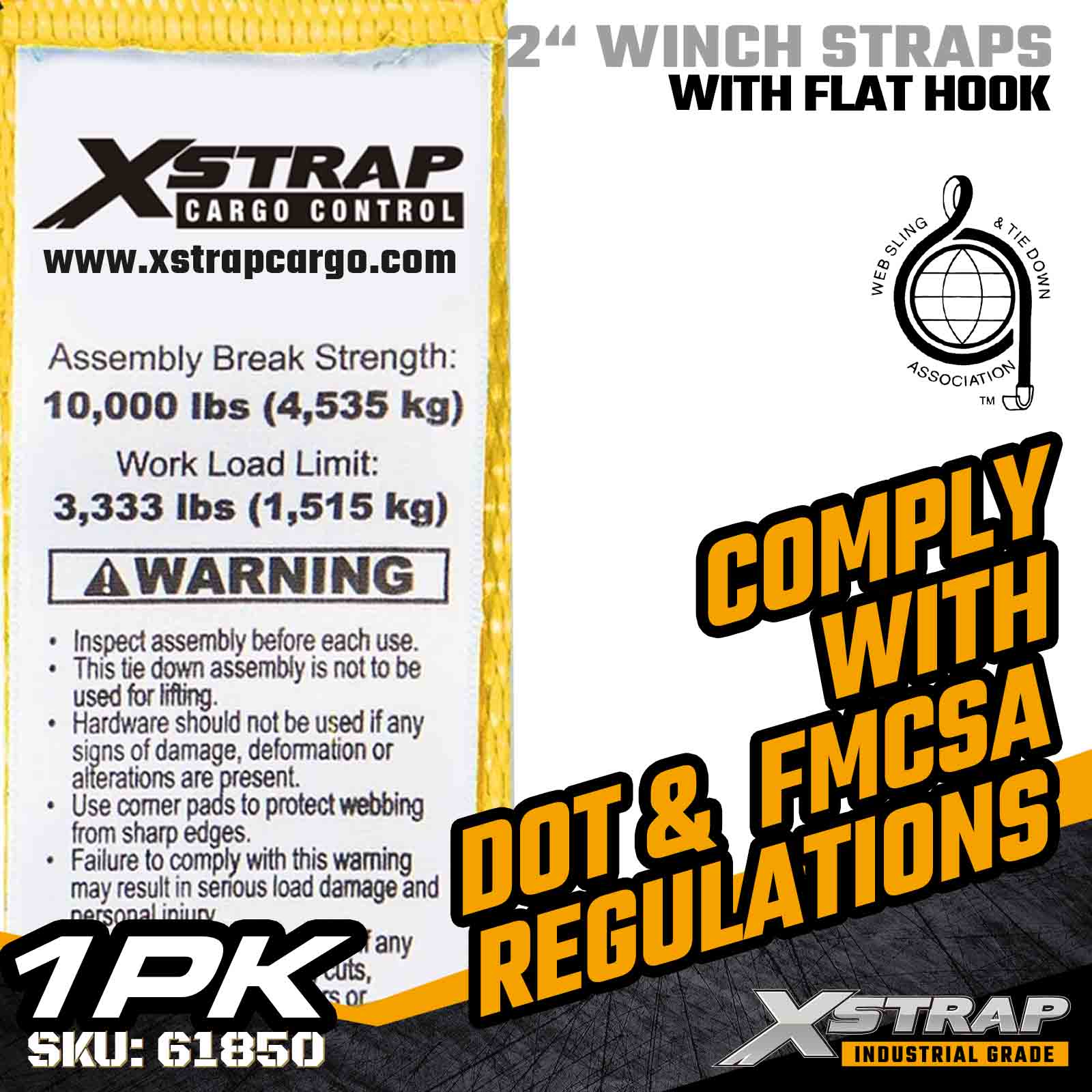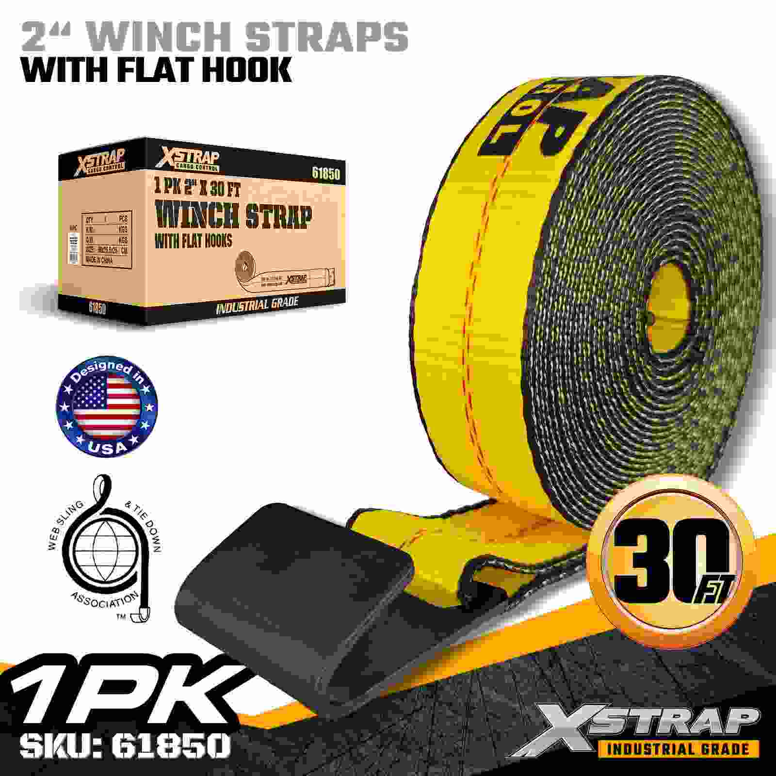 Tali Win Piawai Xstrap 61850 2" × 30 kaki dibina untuk keselamatan kargo katil rata yang boleh dipercayai, menampilkan Cangkuk Rata yang diperkukuh dan anyaman poliester berkekuatan tinggi. Dengan Had Beban Kerja 3,333 lbs dan 10,000 lbs Break Strength, beban pengangkutan umum, pallet dan prestasi yang boleh dipercayai setiap hari. aplikasi logistik.