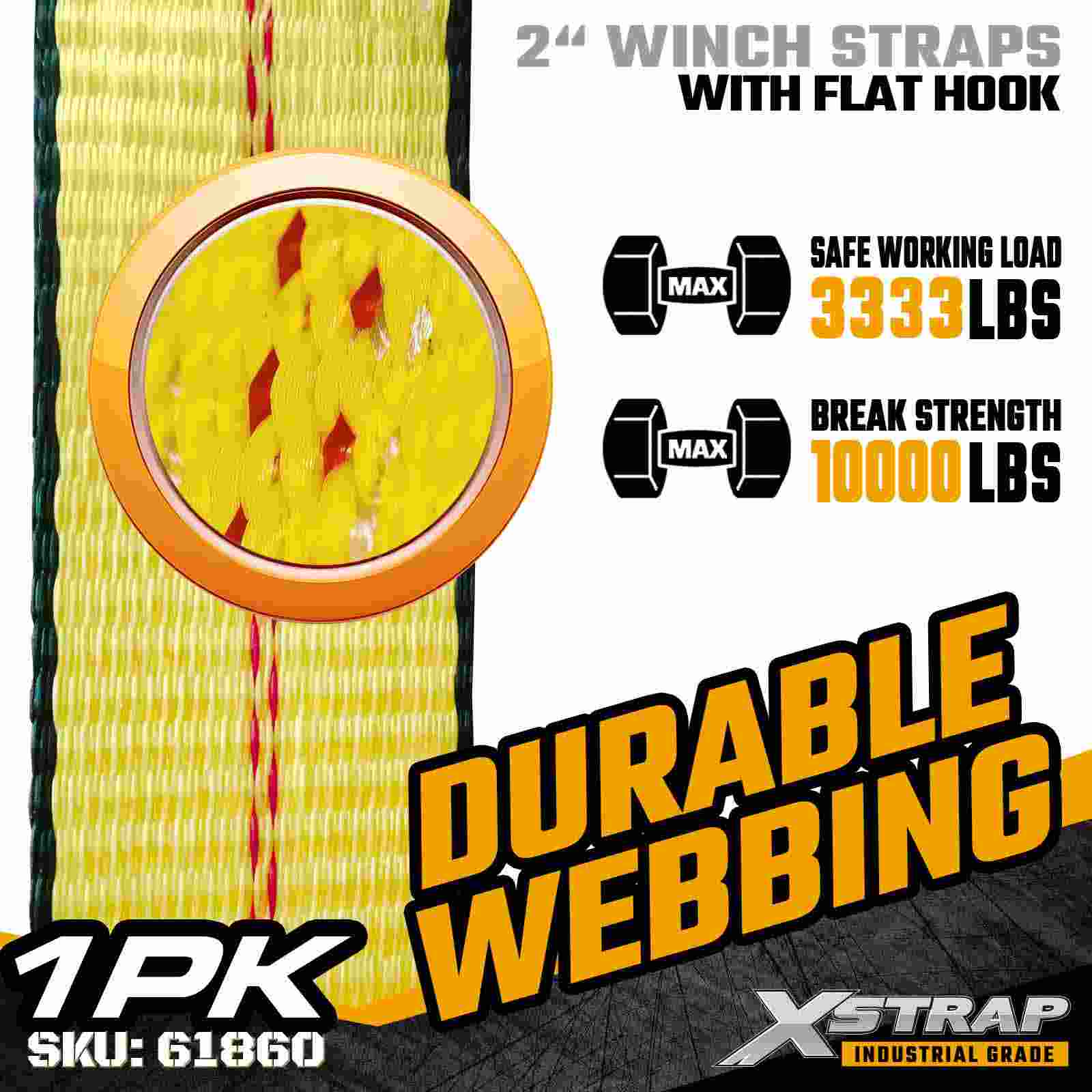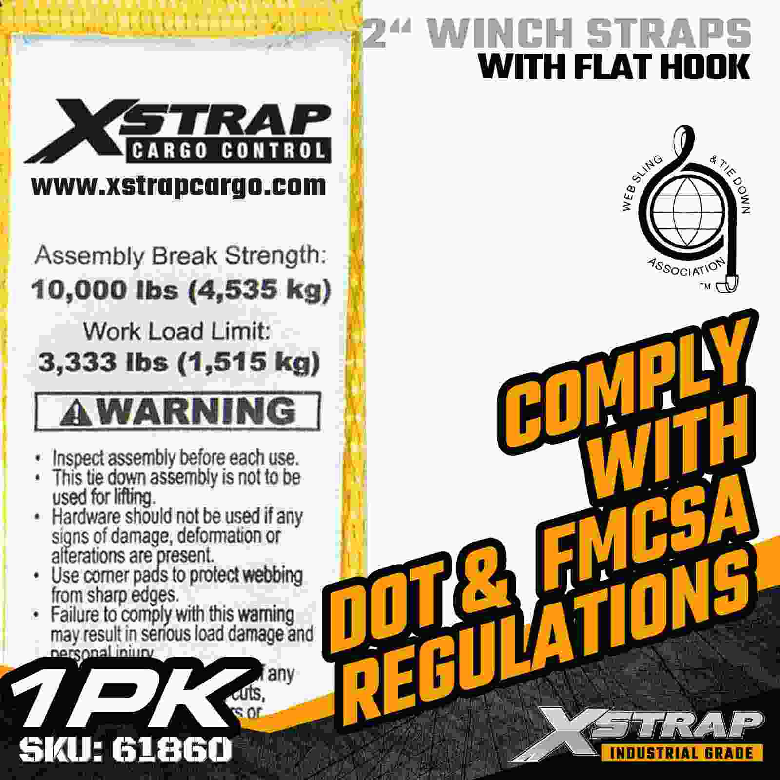Tali Win Piawai Xstrap 61860 2" × 27 kaki dibina untuk keselamatan kargo katil rata yang boleh dipercayai, menampilkan Cangkuk Rata yang diperkukuh dan anyaman poliester berkekuatan tinggi. Dengan Had Beban Kerja 3,333 lbs dan 10,000 lbs Break Strength, ia memberikan prestasi pengangkutan yang boleh dipercayai, lori dan parit setiap hari. aplikasi