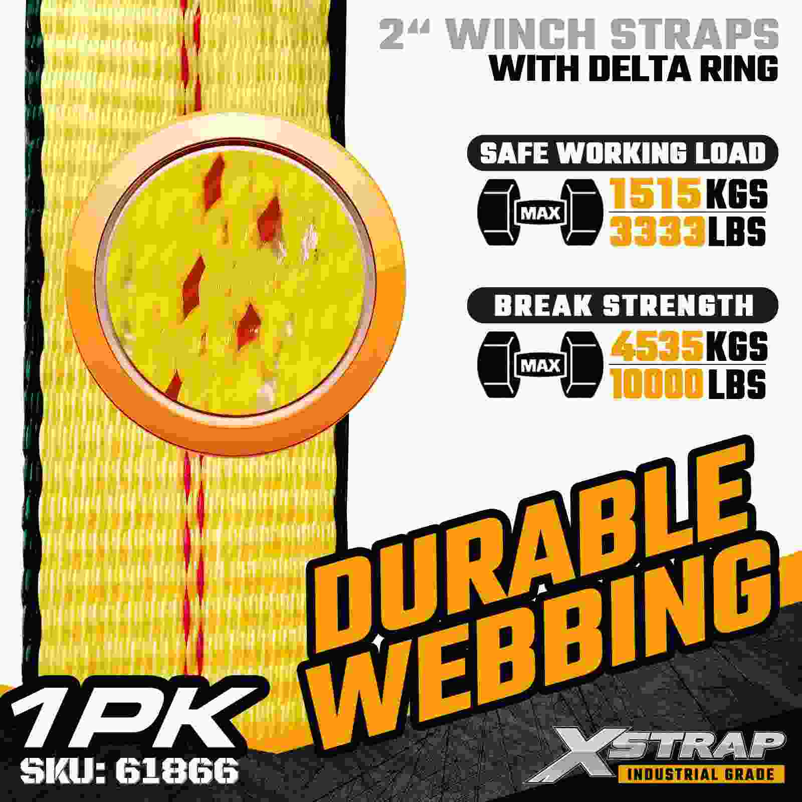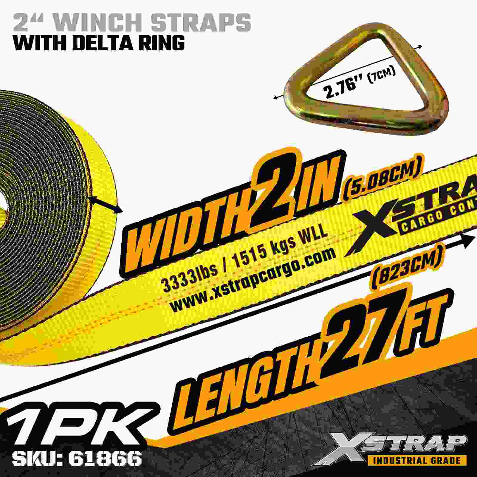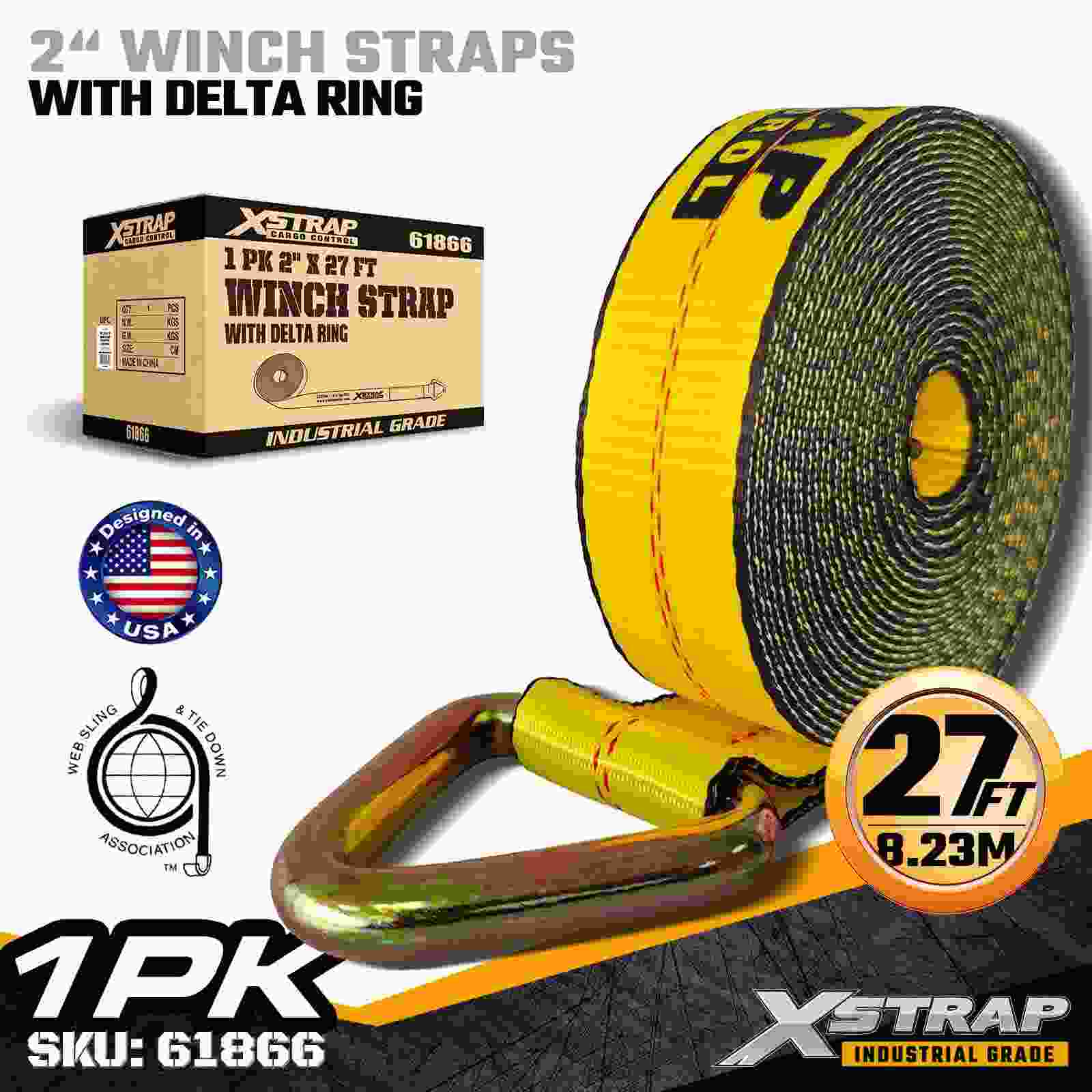 Xstrap 61866 2" × 27 kaki Standard Winch Strap ialah tali pengaman kargo yang tahan lasak dan boleh dipercayai yang direka untuk treler rata dan pengangkutan profesional. Menampilkan Cincin Delta yang kukuh dan anyaman poliester berkekuatan tinggi, tali win 2 inci ini memberikan 3,333 lbs 3,333 lbs untuk Had Beban Kerja dan 10 sekel. Ia adalah ideal. palet, kayu, paip, jentera, dan pengangkutan am semasa operasi pengangkutan harian.