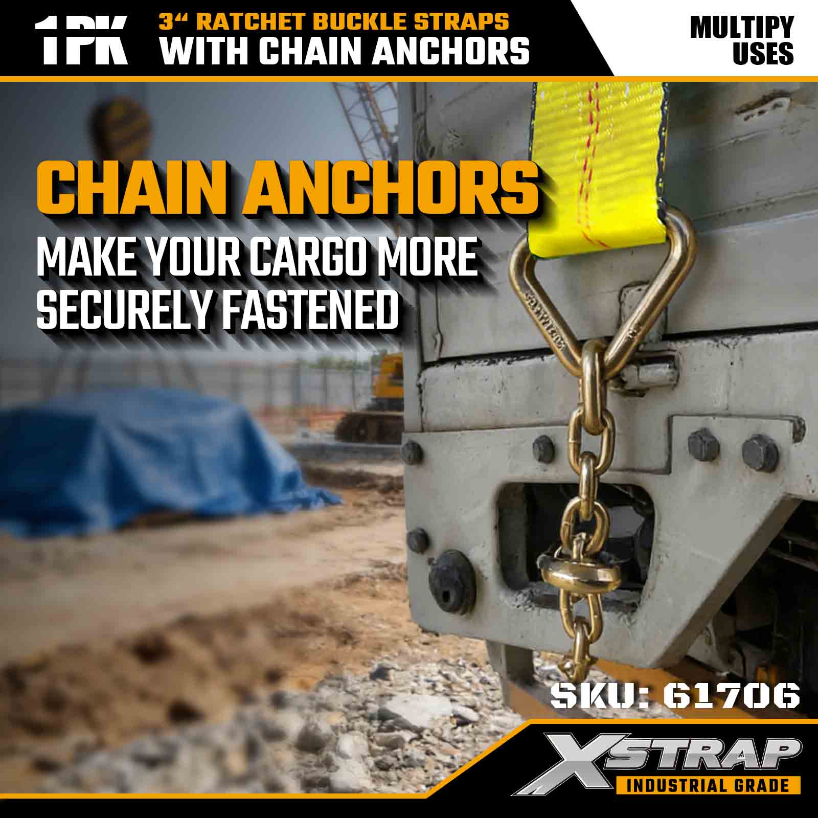 Tali Gancu Ratchet 3" × 30 kaki dengan Penambat Rantaian