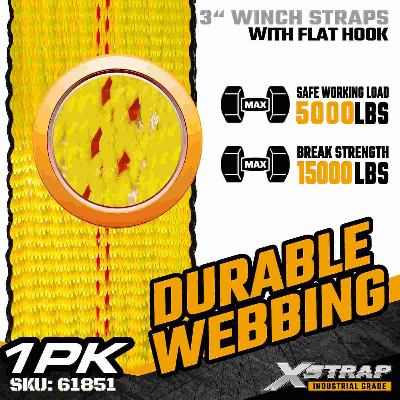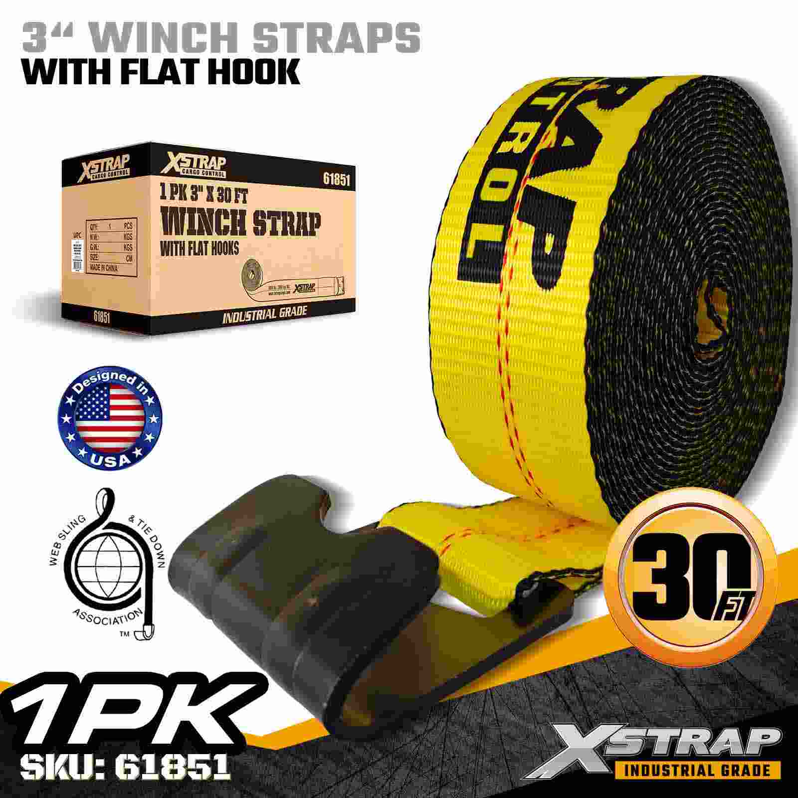 Tali Win Standard Xstrap 61851 3" × 30 kaki ialah tali pengaman kargo tugas berat yang direka bentuk untuk treler katil rata dan pengangkutan berkapasiti tinggi. Menampilkan Cangkuk Rata yang diperkukuh dan anyaman poliester 3 inci yang lebih lebar, tali win 3 inci ini memberikan 5,000 lbs, Limits Working, Limits Working. Kekuatan. Ia sesuai untuk mengamankan kayu, keluli, jentera dan pengangkutan industri semasa operasi pengangkutan yang mencabar.