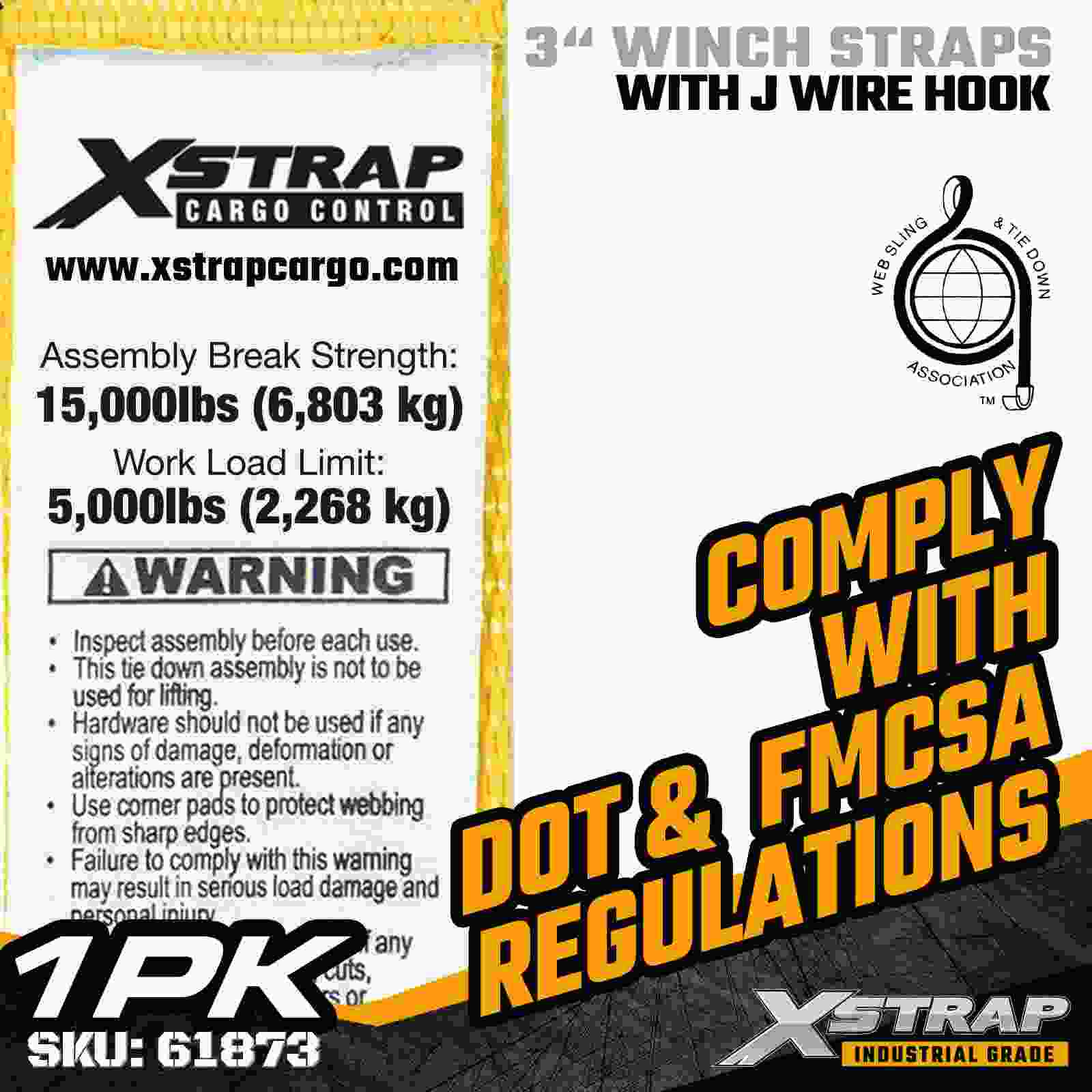 Tali Win Standard Xstrap 61873 3" × 30 kaki ialah tali pengaman kargo tugas berat yang direka untuk treler rata dan muatan bersaiz besar. Menampilkan Cangkuk Wayar bertetulang dan anyaman poliester 3 inci lebih lebar, tali win 3 inci ini memberikan 5,000 lbs Limits Working dan 00 lbs. Kekuatan. Panjang 30 kaki yang dilanjutkan memberikan jangkauan tambahan, menjadikannya ideal untuk mendapatkan beban yang lebih luas, lebih tinggi atau berbentuk tidak teratur yang memerlukan pilihan lampiran yang fleksibel.
