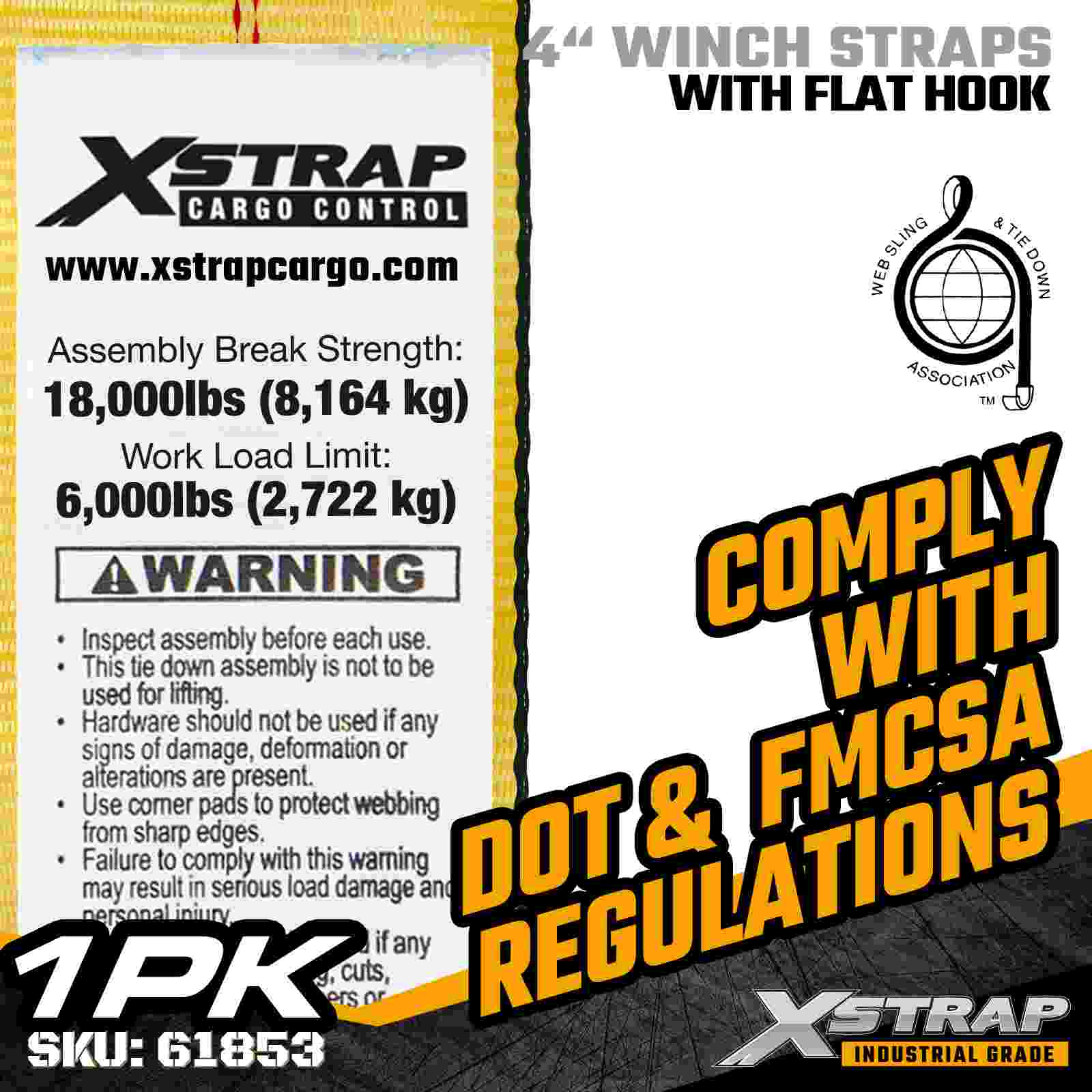 Tali Win Piawai Xstrap 61853 4" × 40 kaki ialah tali pengaman kargo berkapasiti tinggi, jangkauan lanjutan yang direka bentuk untuk treler katil rata dan pengangkutan industri yang bersaiz besar. Menampilkan Cangkuk Rata yang diperkukuh dan anyaman poliester 4 inci yang lebih lebar, tali winch 4 inci dan Loading 6000000000000 kg ini. 18,000 paun Kekuatan Pecah Panjang 40 kaki yang lebih panjang memberikan jangkauan yang luar biasa untuk mendapatkan beban yang lebar, tinggi atau berbentuk tidak teratur yang memerlukan liputan dan kestabilan maksimum.