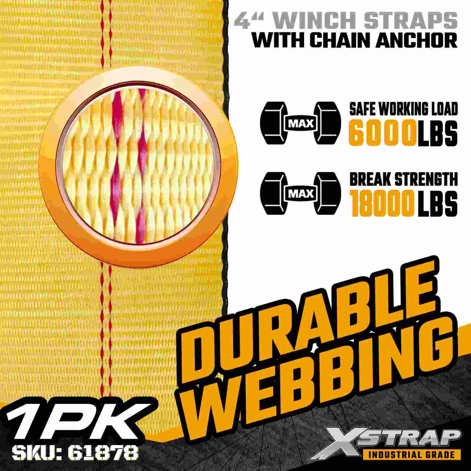 Tali Win Piawai Xstrap 61878 4" × 27 kaki ialah tali pengaman kargo industri tugas berat yang direka bentuk untuk treler rata dan keadaan beban yang melampau. Menampilkan Anchor Rantaian palsu dan anyaman poliester 4-inci ultra lebar, tali winch 4 inci ini memberikan 6,000 lbs, Limit 1,000 kg. Kekuatan. Reka bentuk Rantaian Sauh memberikan cengkaman dan ketahanan yang tiada tandingan, menjadikannya ideal untuk mengamankan keluli, jentera dan pengangkutan bertegangan tinggi yang lain.