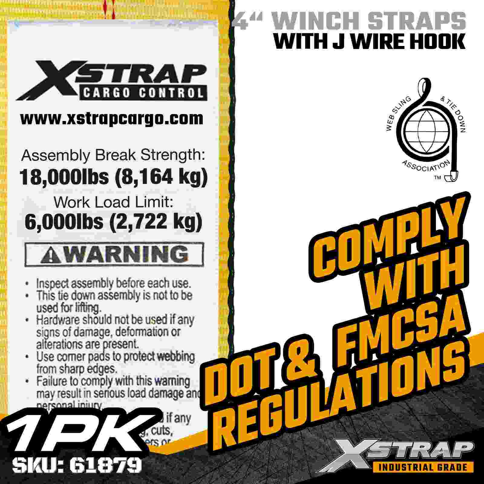 Tali Win Standard Xstrap 61879 4" × 27 kaki ialah tali pengaman kargo berlabuh fleksibel yang tugas berat yang direka untuk treler rata dan pengangkutan industri. Menampilkan Cangkuk Wayar bertetulang dan anyaman poliester 4-inci ultra lebar, tali win 4 inci ini memberikan beban Limits1,000 lb6,000. lbs Break Strength Reka bentuk Cangkuk Kawat menawarkan pilihan lampiran serba boleh, menjadikannya ideal untuk pengendali yang memerlukan titik sambungan yang cepat dan boleh disesuaikan untuk pelbagai jenis pengangkutan.