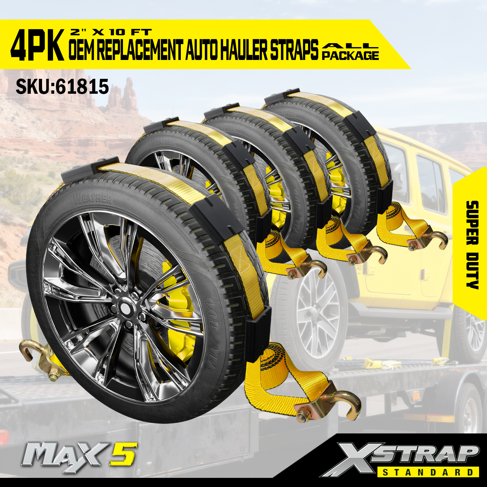Tali Pengangkut Kereta Xstrap Heavy Duty 6,600 lbs Kekuatan Pecah - Tali Pengikat Tayar untuk Treler, Pengikat Atas Roda dengan Cleat Getah untuk SUV, Lori, ATV, UTV