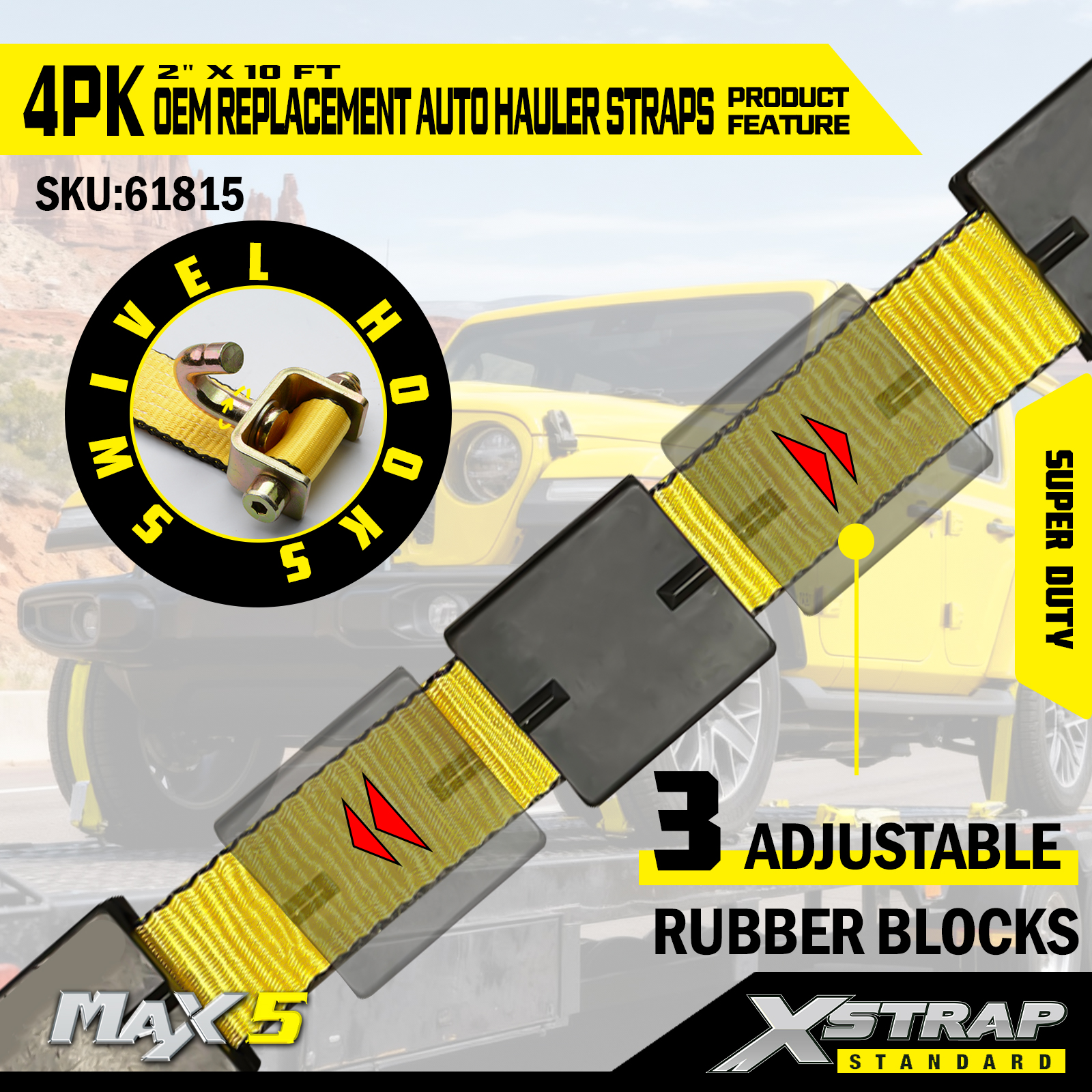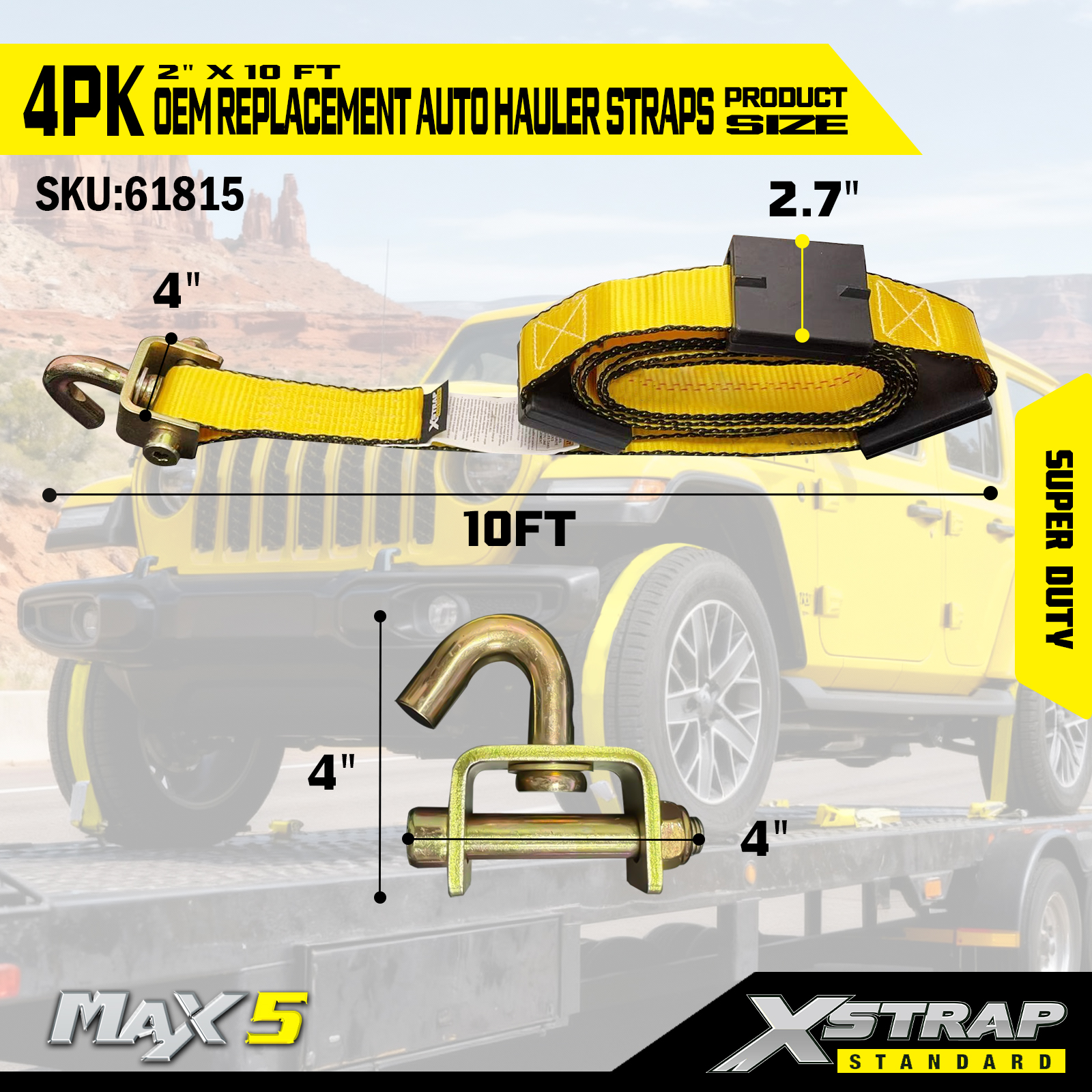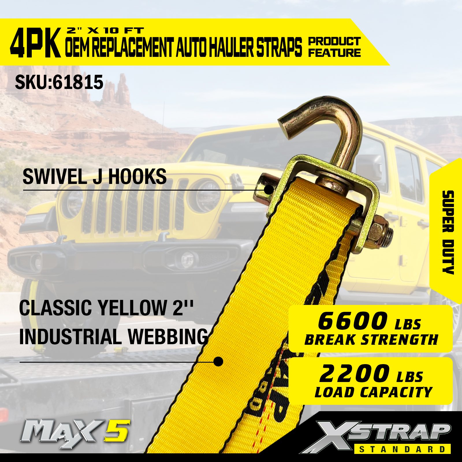 - Kapasiti Beban Tugas Super: Dinilai untuk beban kerja selamat 2,200LBS dan kekuatan pecah 6,600LBS, ia memenuhi permintaan pengangkutan kenderaan berat.