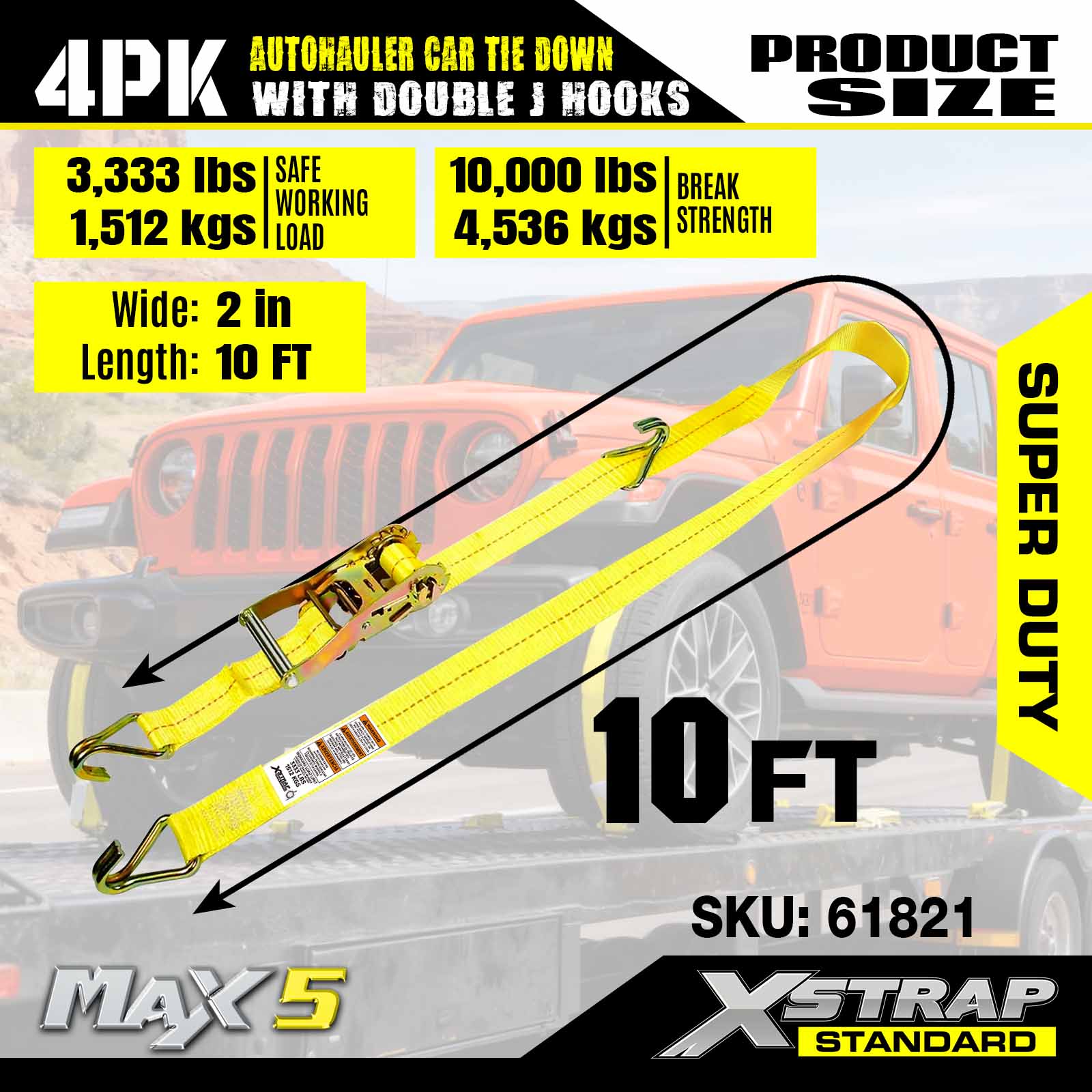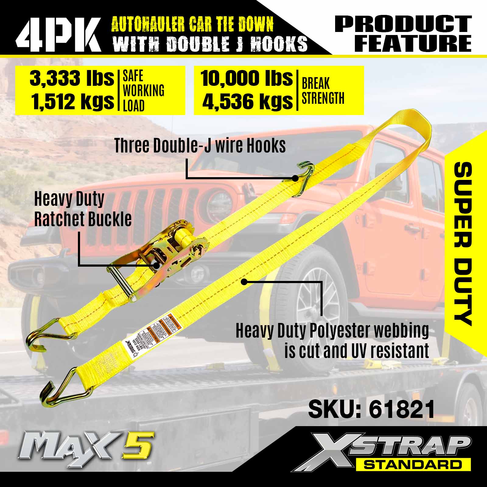 - Prestasi Tugas Super: Dinilai untuk beban kerja selamat 3,333LBS dan kekuatan pecah 10,000LBS, ia dibina untuk mengendalikan kenderaan berat dan senario pengangkutan yang mencabar.