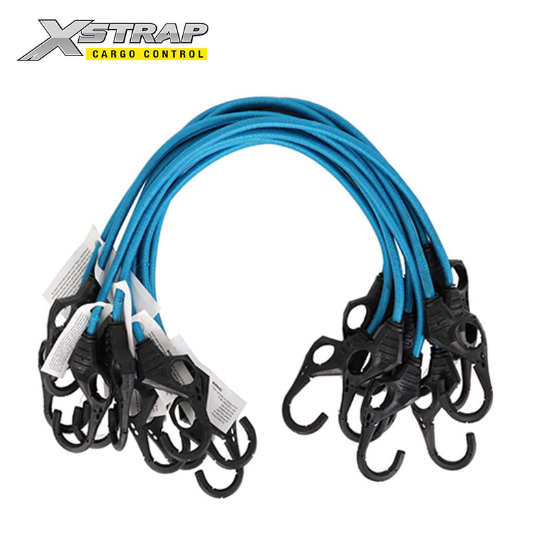 Tali bungee dengan cangkuk lubang jari yang diperbuat daripada getah tenunan silang dan lateks tahan UV yang unggul, tidak akan haus atau pecah dengan penggunaan harian atau iklim yang berbeza.