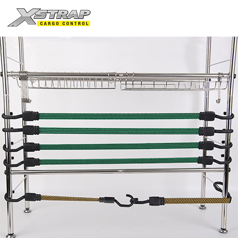 Ini adalah tali bungee rata kami dengan cangkuk. Kord bungee rata tugas berat dengan cangkuk digunakan untuk perkhemahan, bumbung rak, treler dan kawalan kargo.
