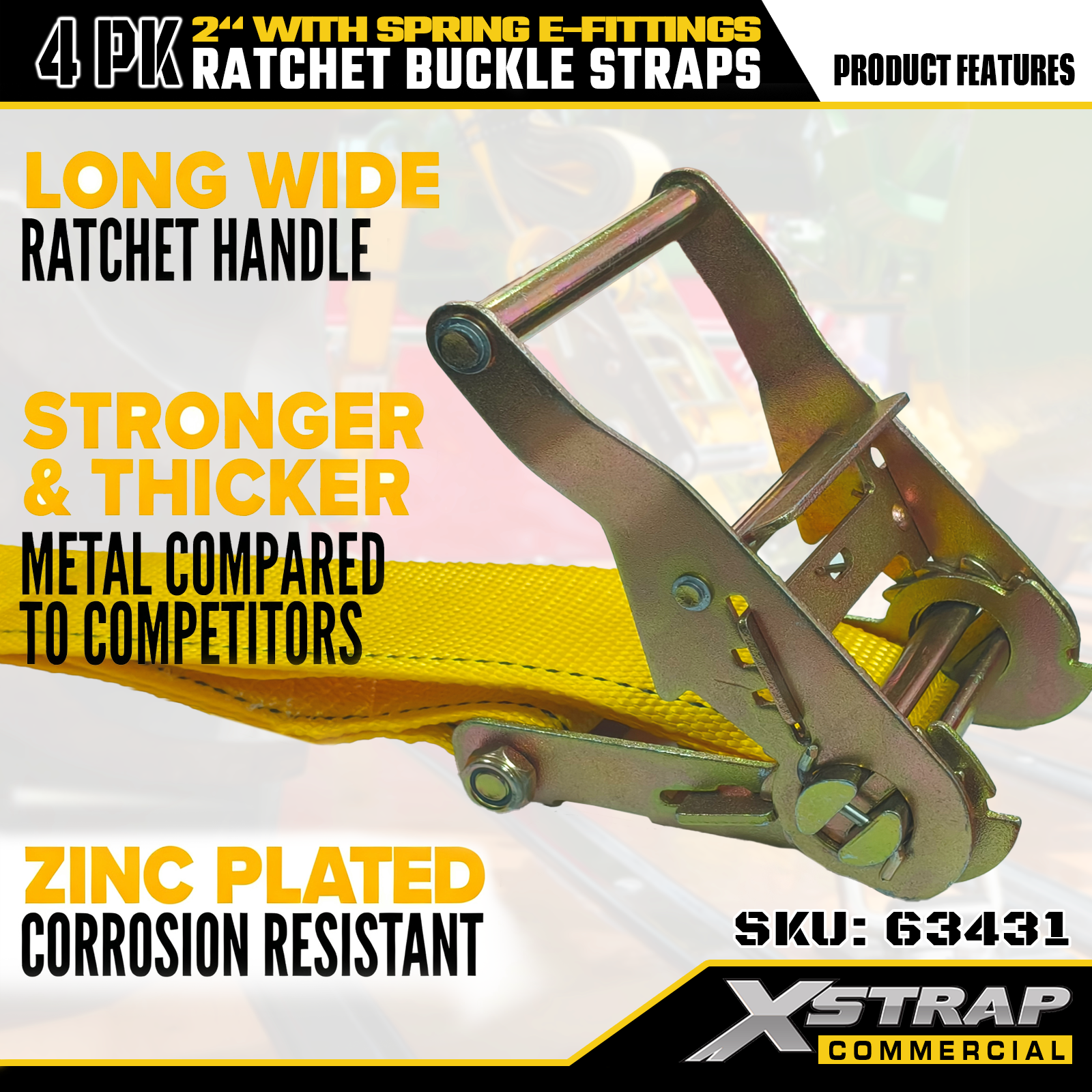 Xstrap 4 Pek Tali Pengikat Ratchet, Tali Pengaman Kargo Poliester 2" x 12', 1467 lbs Beban Kerja Selamat & 4401 lbs Kekuatan Pecah, dengan Cangkuk Logam untuk Lori, Mesin Pemotong, ATV