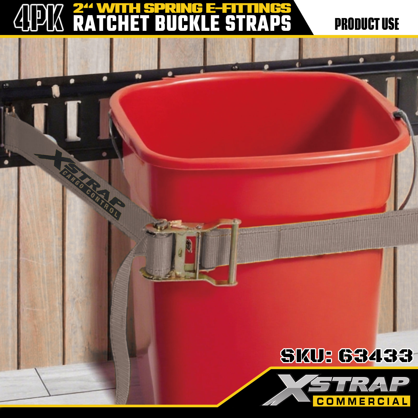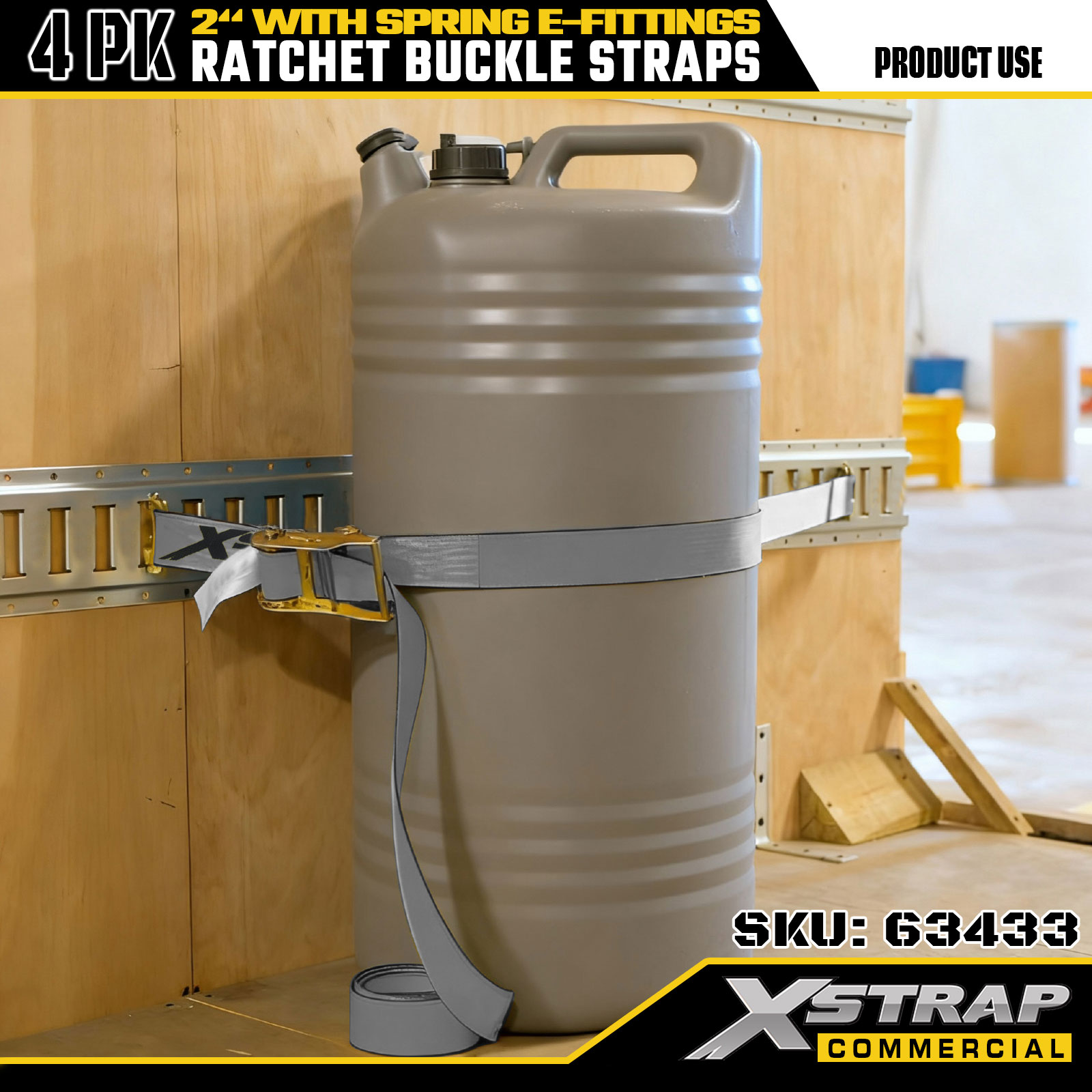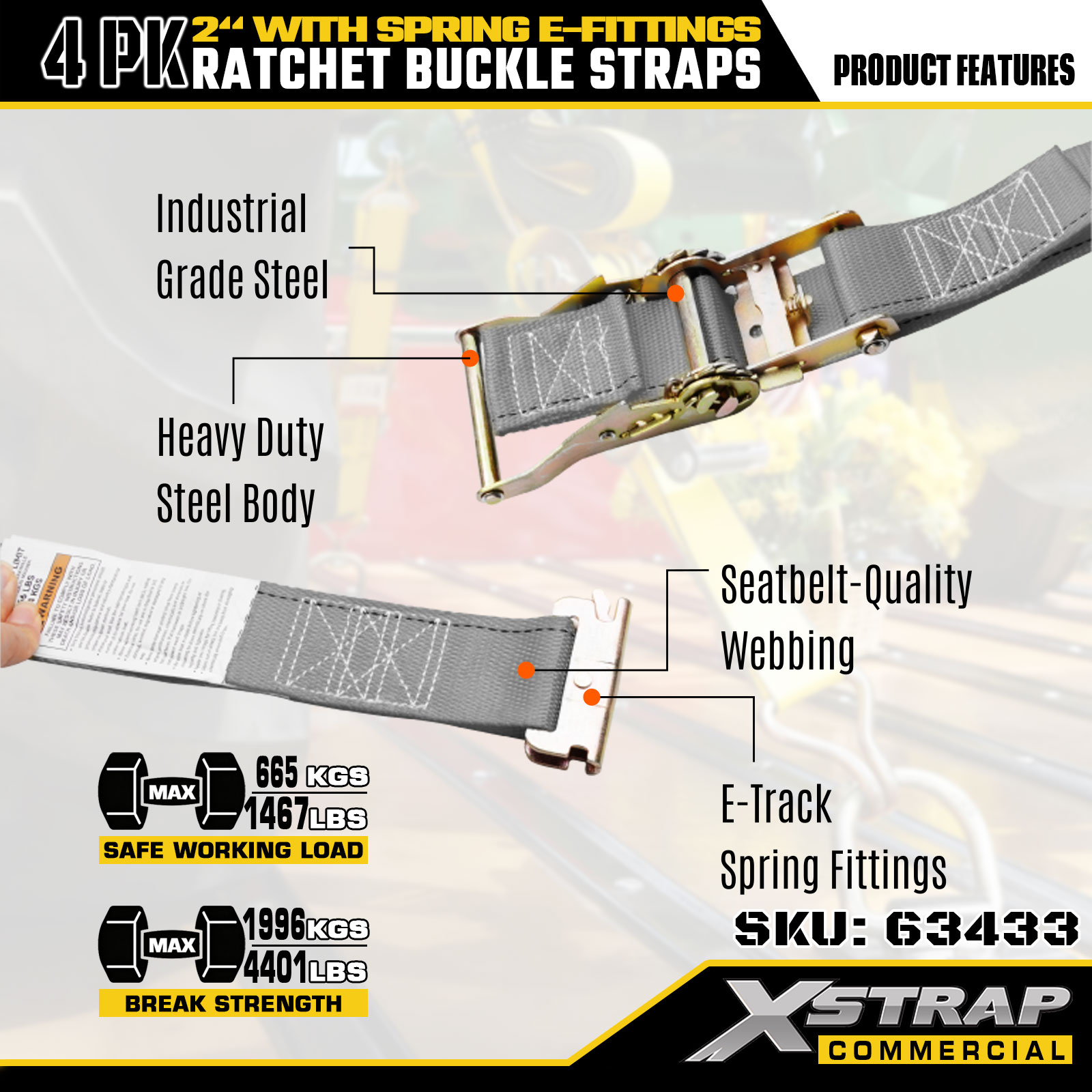 Xstrap 4 Pek Tali Pengikat Ratchet, Tali Pengaman Kargo Poliester 2" x 16', 1467 lbs Beban Kerja Selamat & 4401 lbs Kekuatan Pecah, dengan Cangkuk Logam E untuk Lori, Mesin Pemotong, ATV2. Spesifikasi produk:
