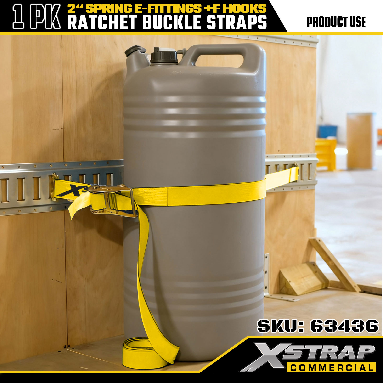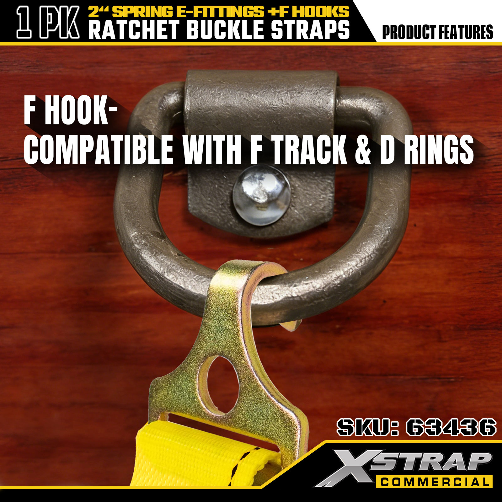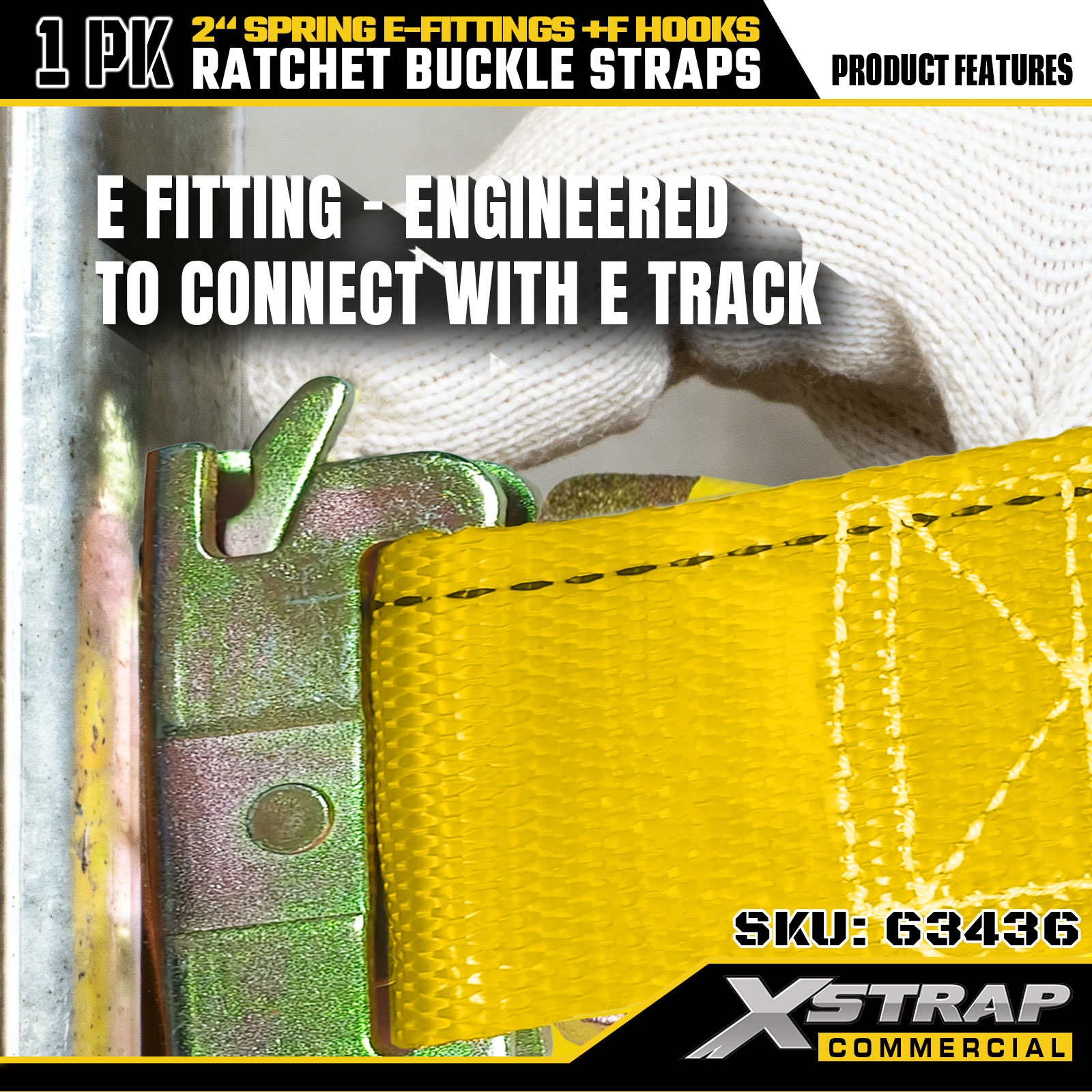 Tali Ratchet Tie-Down 1 Pek Xstrap, Pengikat Kargo Tugas Berat 2" x 12' dengan E-Fitting Spring dan Cangkuk F (Kuning), Kapasiti 733 lbs untuk Pengaman Treler, Lori, Van & Motosikal