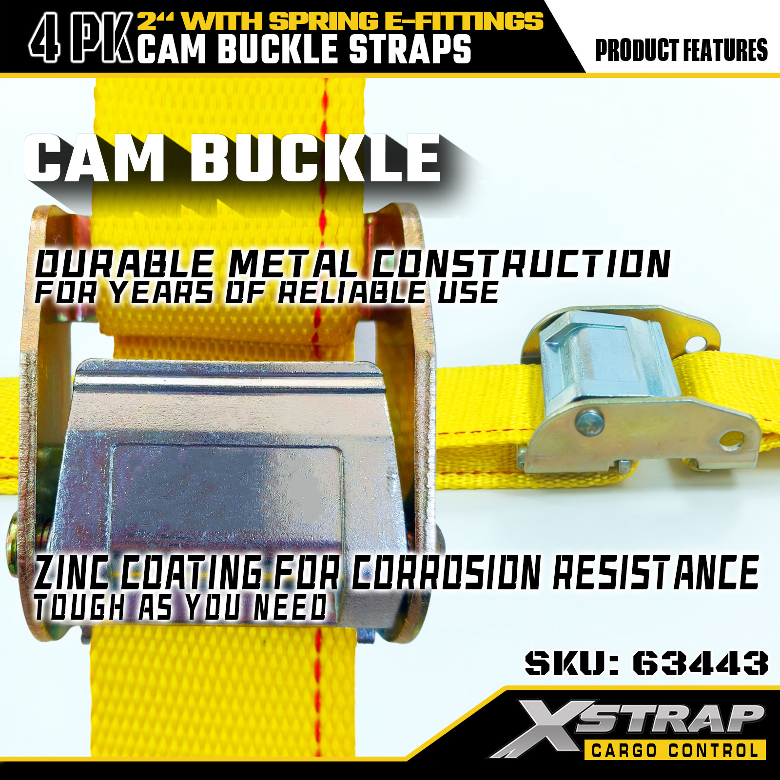 Tali Gancu Cam 2" x 12' 4PK Dengan E-Fitting Spring