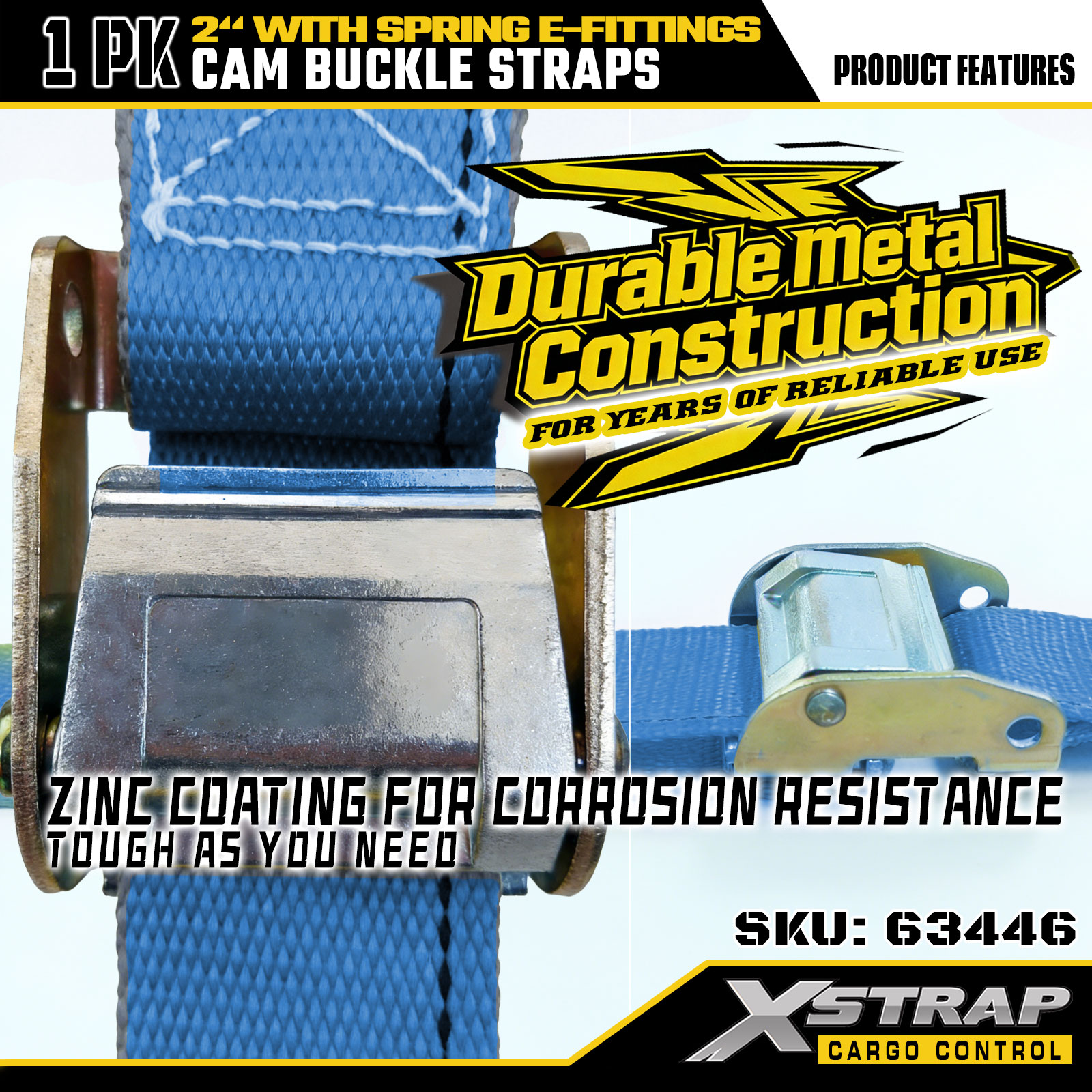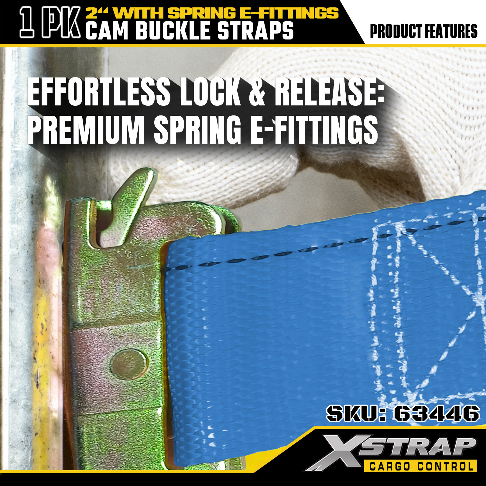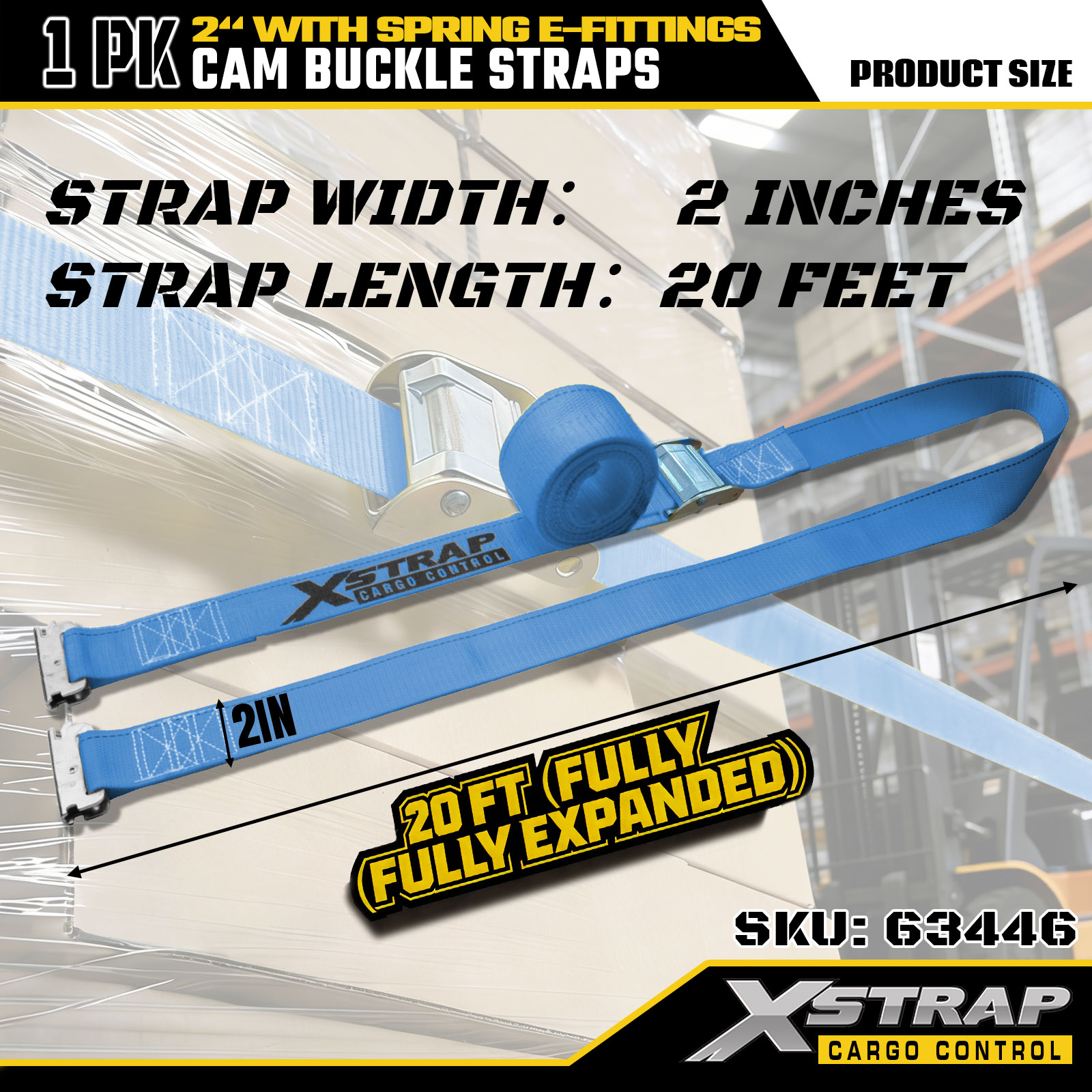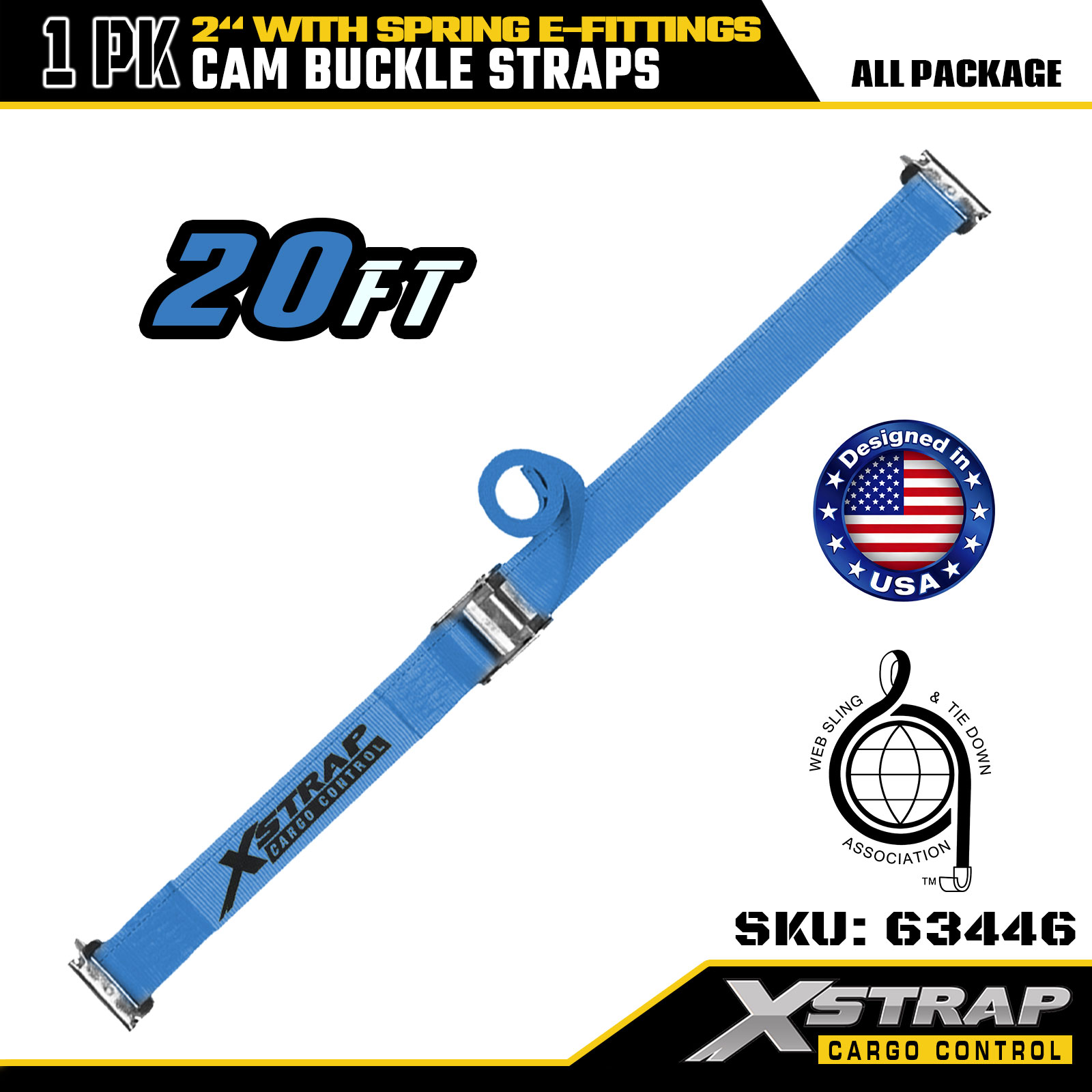 Xstrap 63446 Tali Ratchet Tugas Berat 2" x 20' (1PK) - Poliester Biru dengan E-Fitting Spring & Cangkuk F, 733 lbs SWL & 332 lbs Kekuatan Pecah untuk Kawalan Kargo, Pergerakan & Pengangkutan