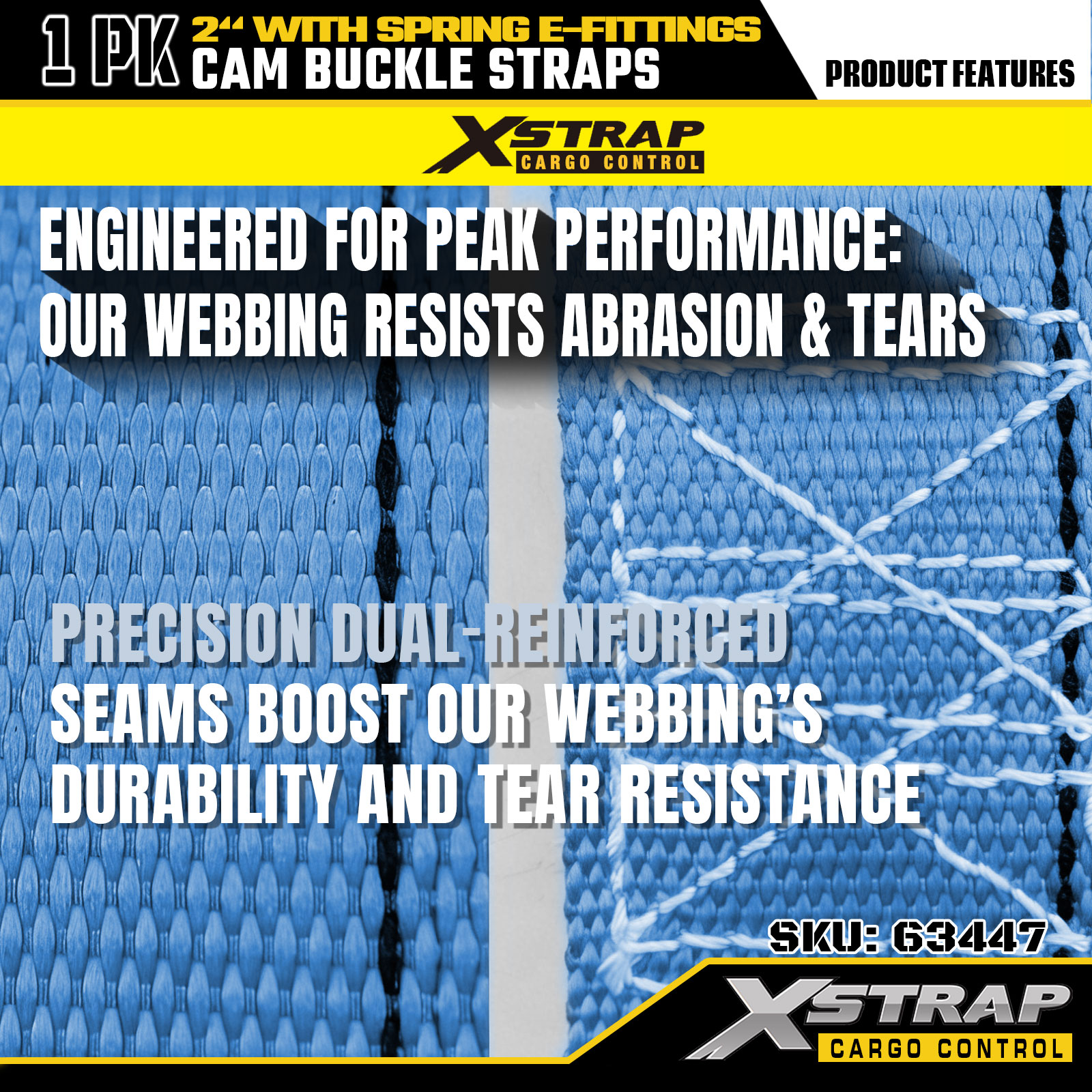 - Webbing Poliester Biru Tough - 100% poliester biru tegangan tinggi dengan jahitan bertetulang panjang penuh, memberikan rintangan lelasan yang kuat dan regangan minimum. Kalis cuaca terhadap sinaran UV, lembapan dan cendawan, sesuai untuk kegunaan dalaman dan luaran.