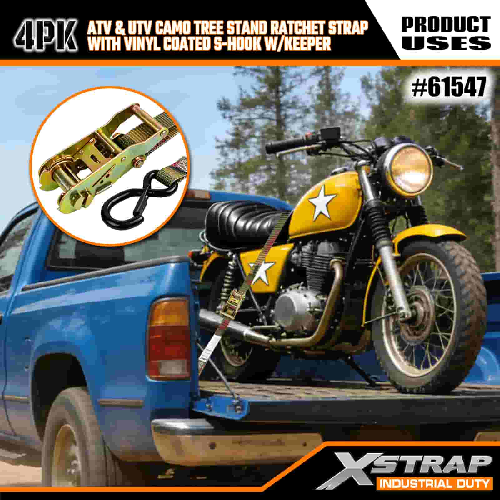 - Dibina untuk Pengembaraan Luar: Sama ada anda mengangkut dirian pokok ke tempat perburuan anda atau mengamankan motosikal untuk tunggangan hujung minggu, tali ini menjadikan pemuatan yang tertekan menjadi langkah yang pantas dan boleh dipercayai. Reka bentuk camo memastikan gear anda rendah, jadi anda kekal fokus pada pemburuan atau jejak.