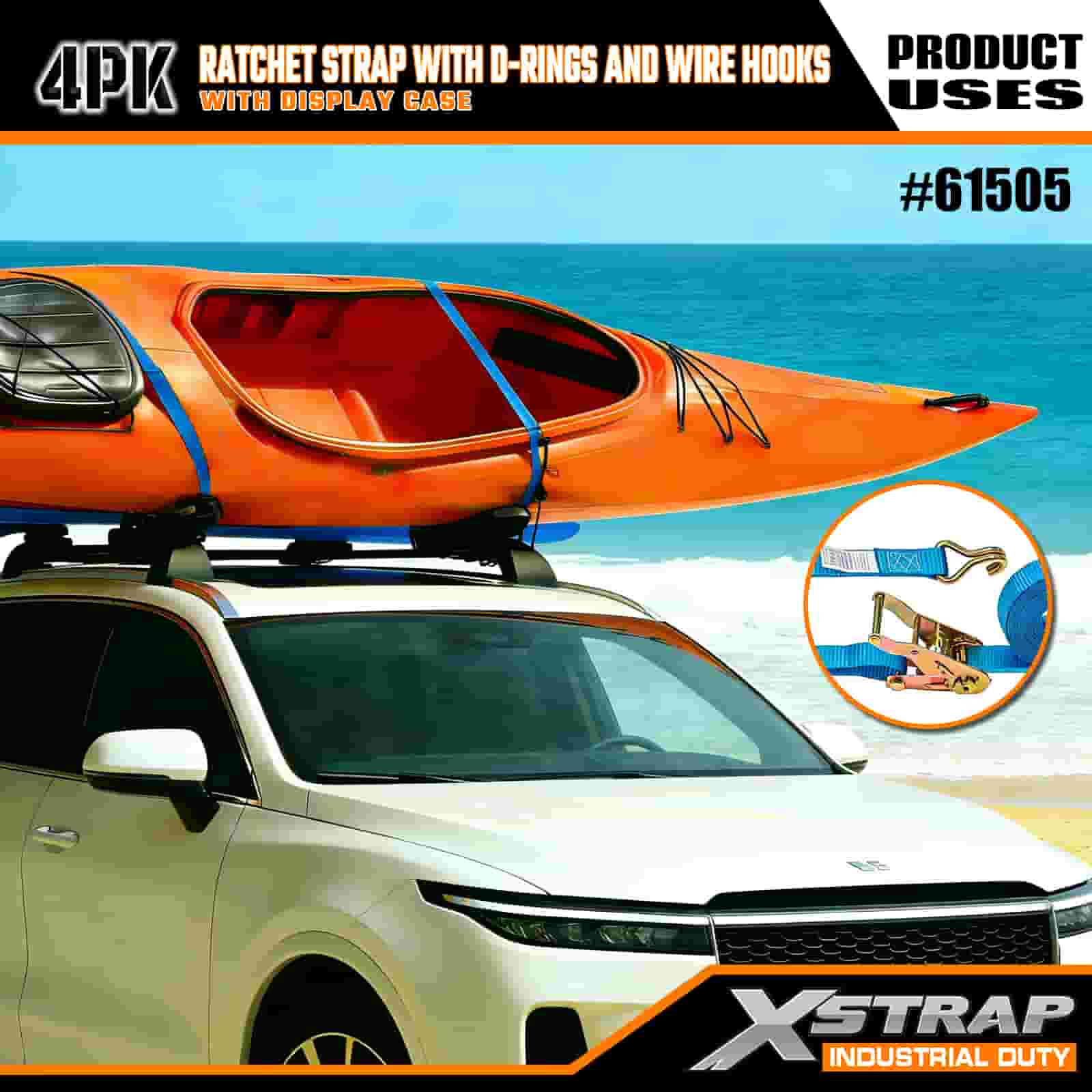 - 4-Pek Praktikal dengan Kotak Paparan: Dijual dalam satu set 4 (dengan pembungkusan paparan) untuk kegunaan kelompok, dan setiap tali berukuran 1 inci lebar × 15 kaki panjang—sesuai untuk mengamankan item seperti kayak, peralatan luar atau kargo berat.