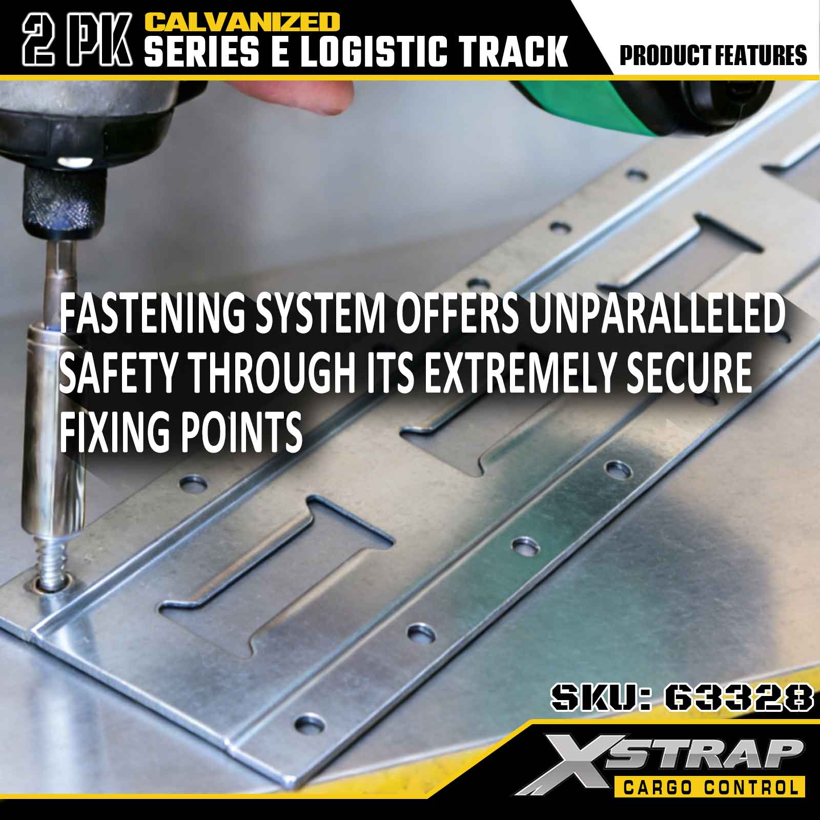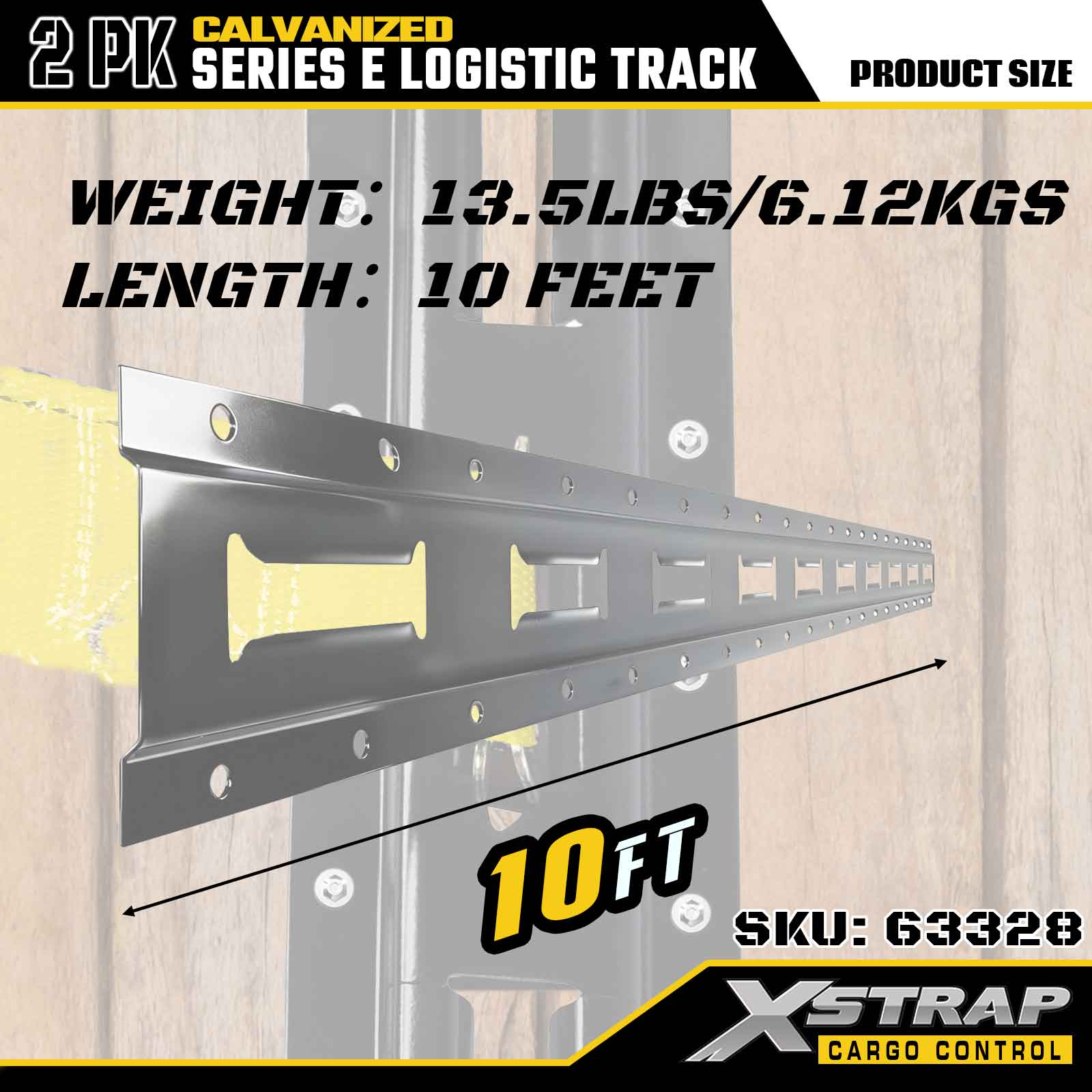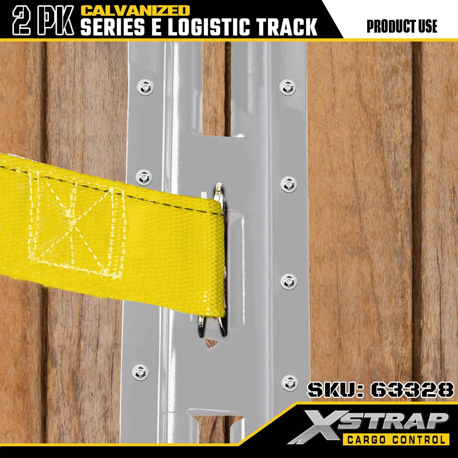 Xstrap 63328 Rel Pengikat E-Track Perak Saduran 10 kaki - Keluli 12 Tolok dengan Kemasan Bergalvani, Kapasiti Muatan 6000LBS, 2 Pek untuk Keselamatan Kargo