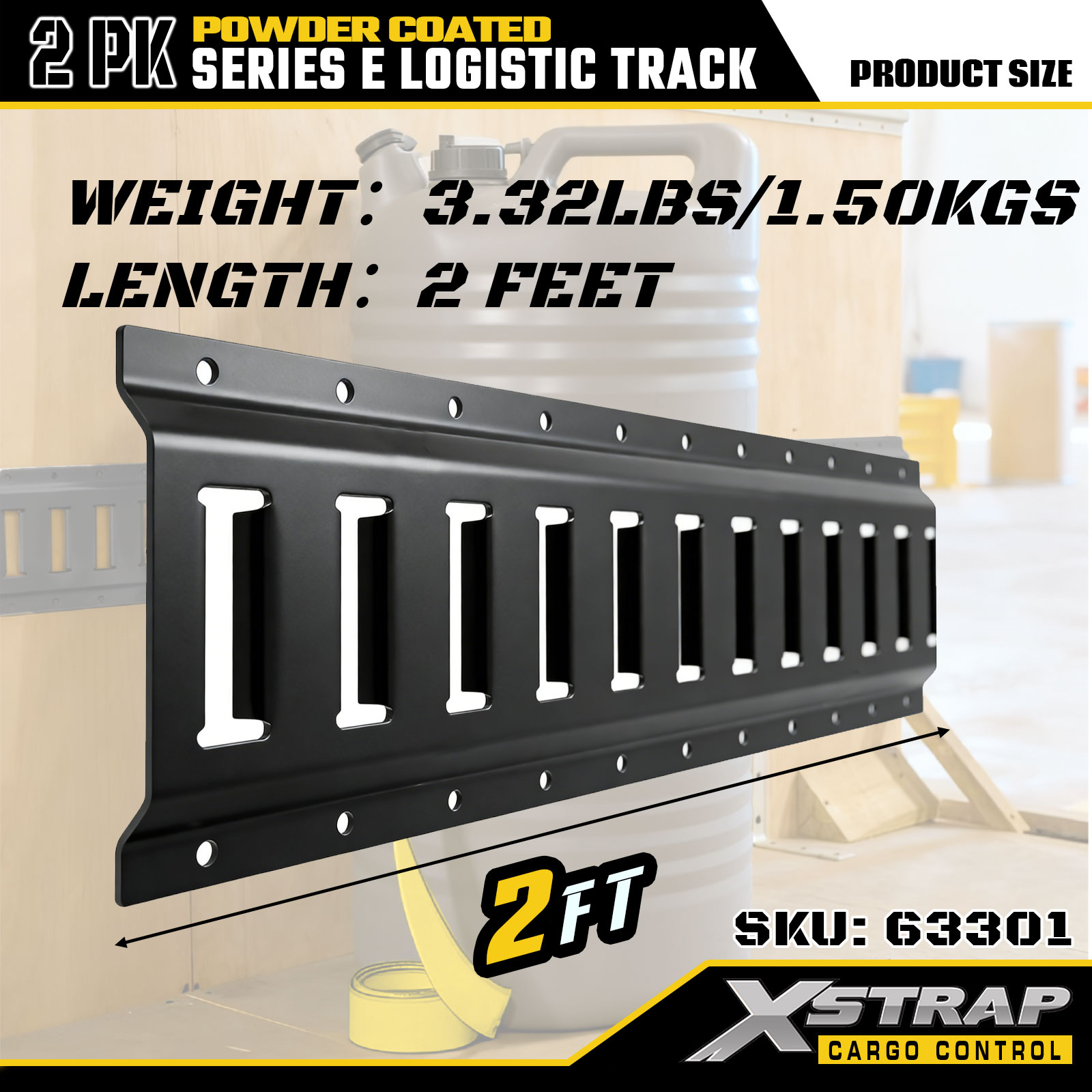 - Pembinaan Keluli Tugas Berat - Trek logistik 2 pek 2 kaki E diperbuat daripada keluli 12 tolok gred tinggi, yang mempunyai kapasiti muatan 6000 paun untuk melabuhkan aksesori pengaman kargo secara stabil semasa bergerak dan mengangkut. Kemasan kelabu menawarkan ketahanan dan rintangan kakisan untuk kegunaan jangka panjang.