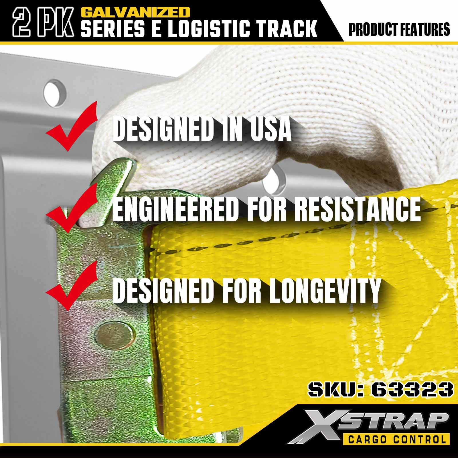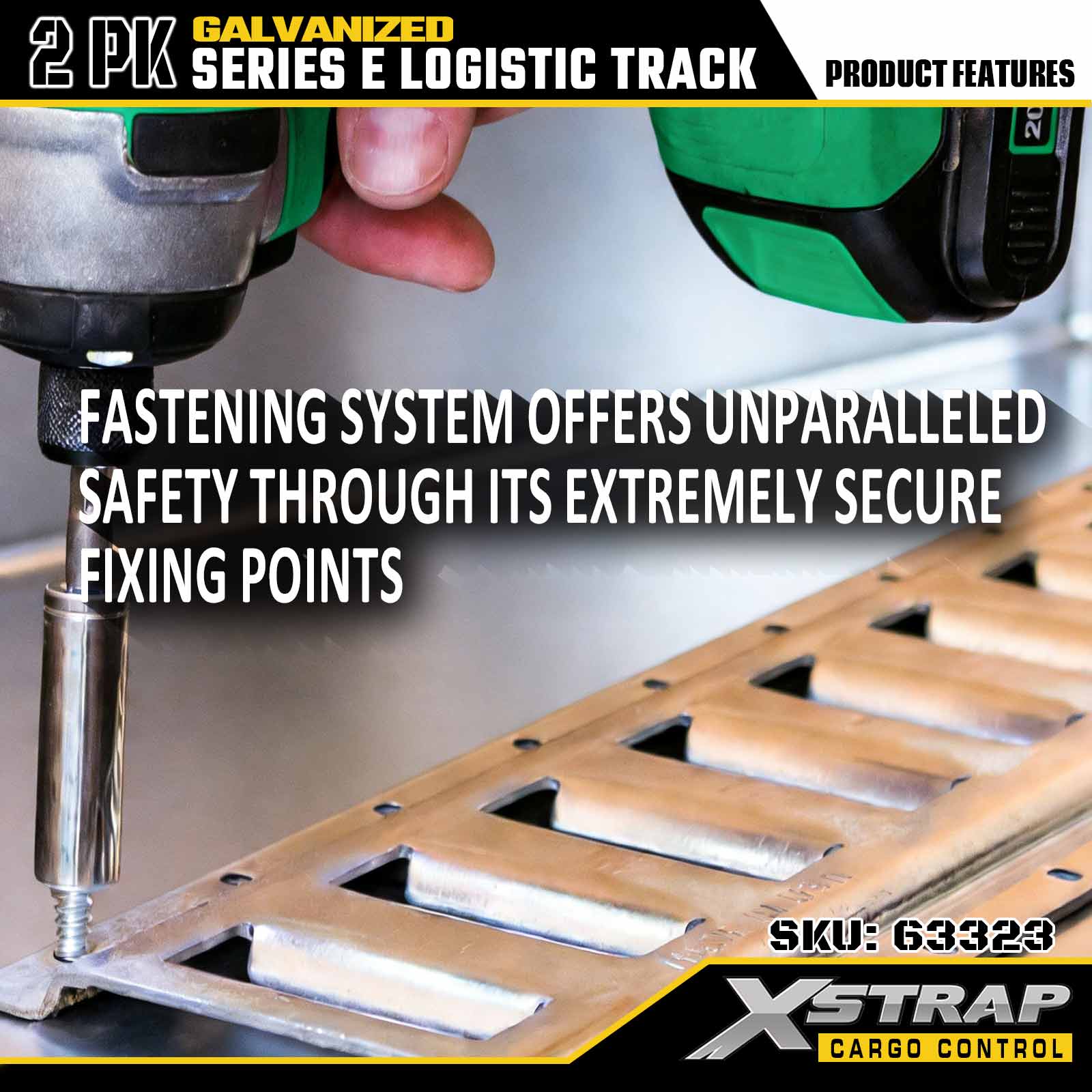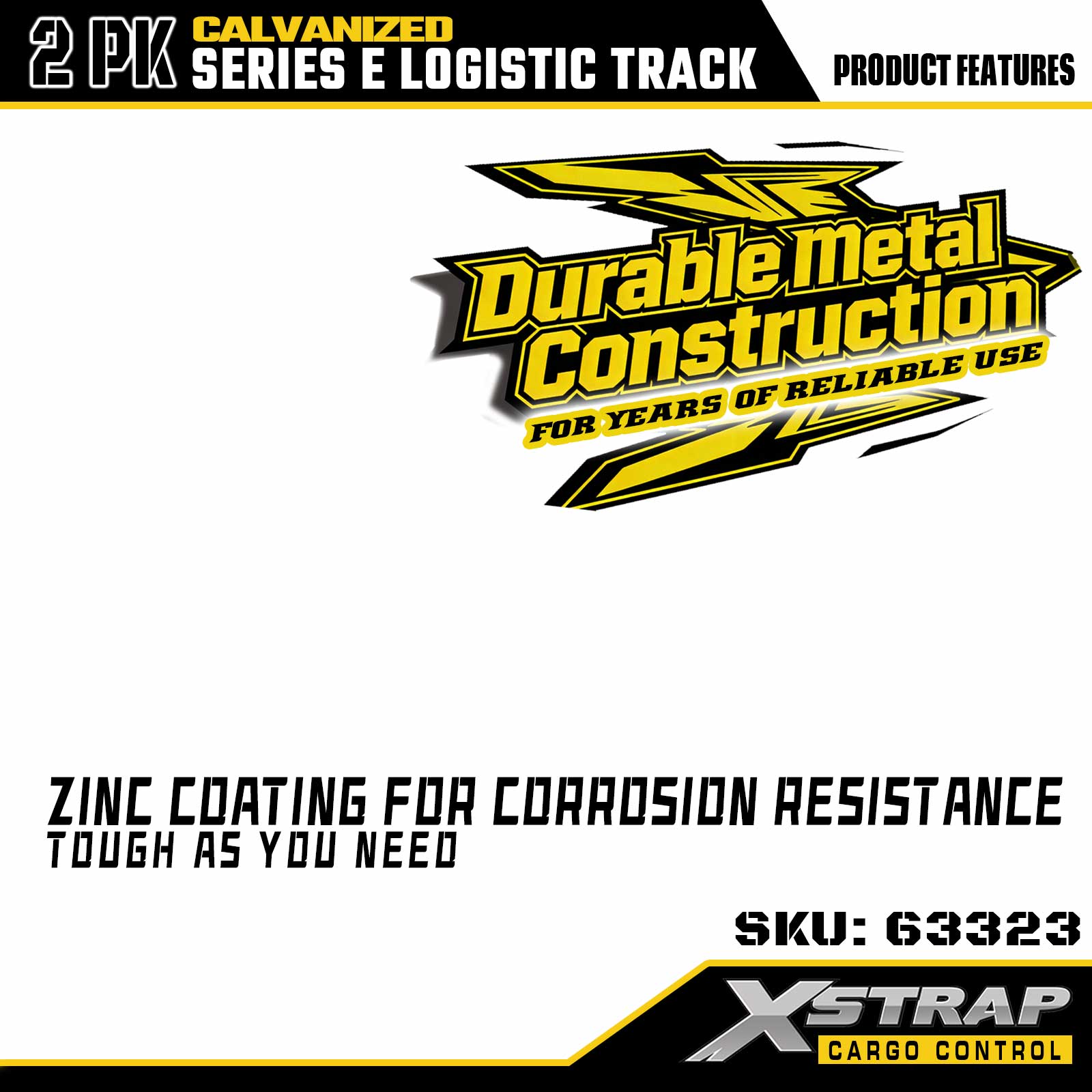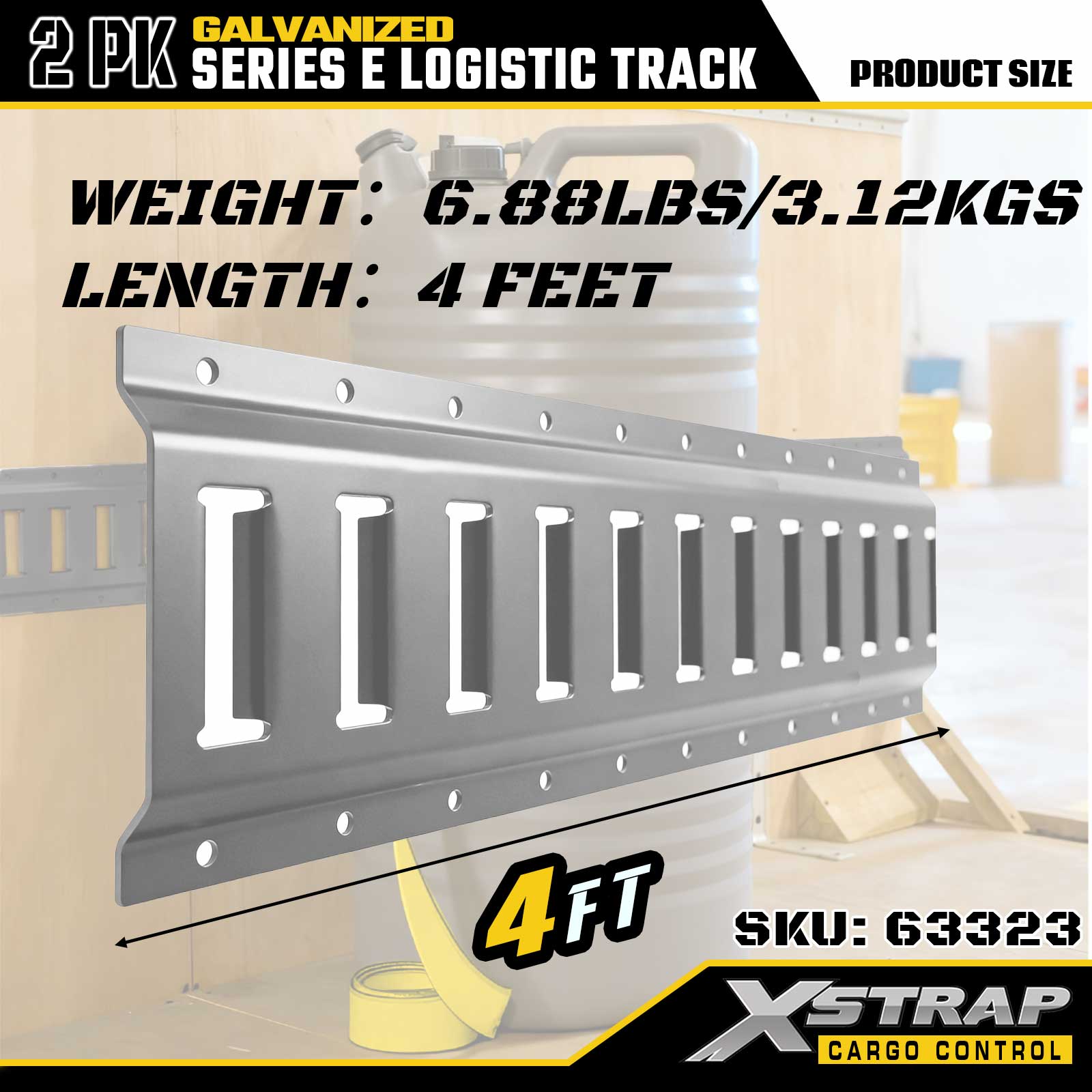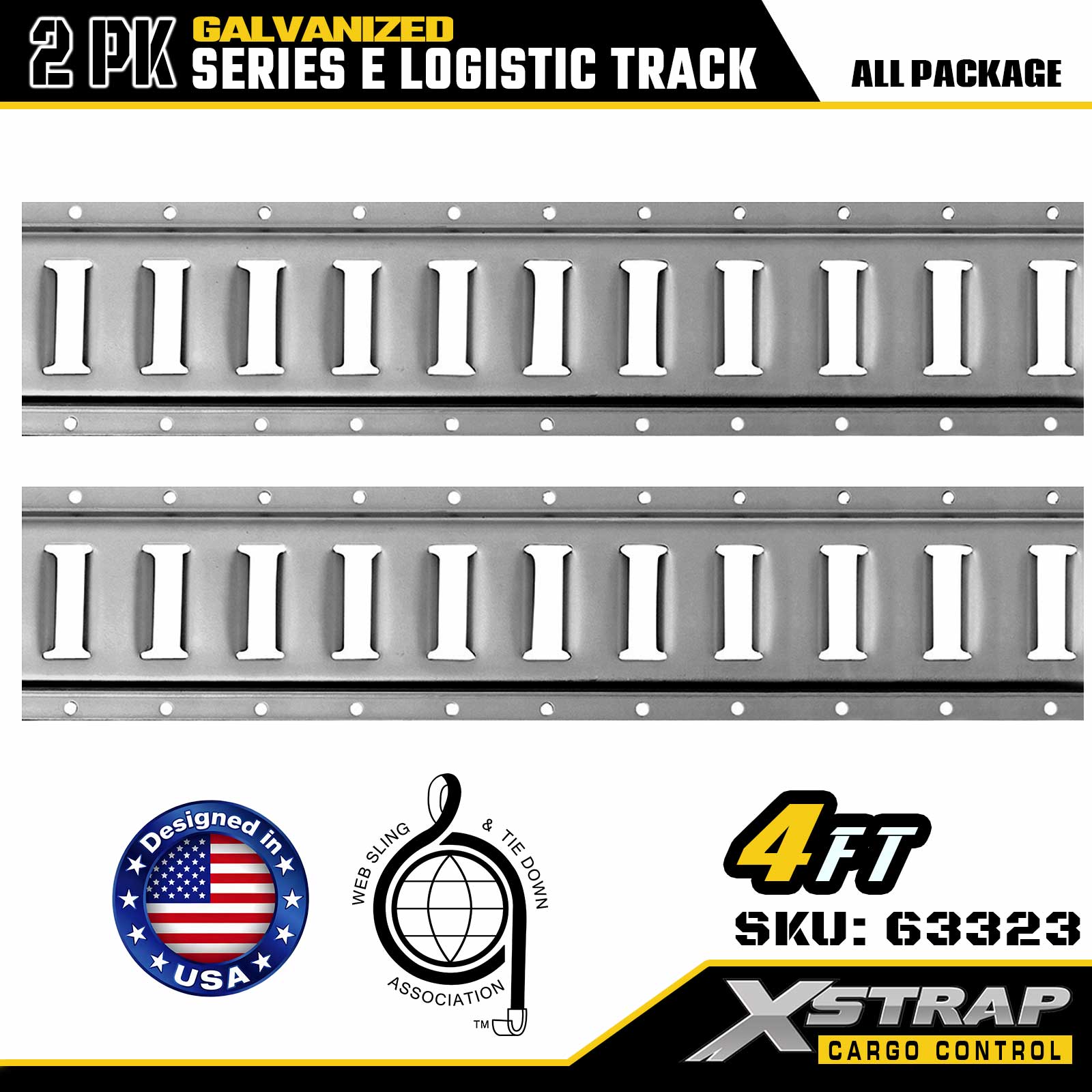 Rel Tie-Down E-Track Perak Xstrap 63322 4 kaki Elektronik - Keluli 12-Tolok dengan Kemasan Bergalvani, Kapasiti Muatan 6000LBS, 2-Pek untuk Keselamatan Kargo