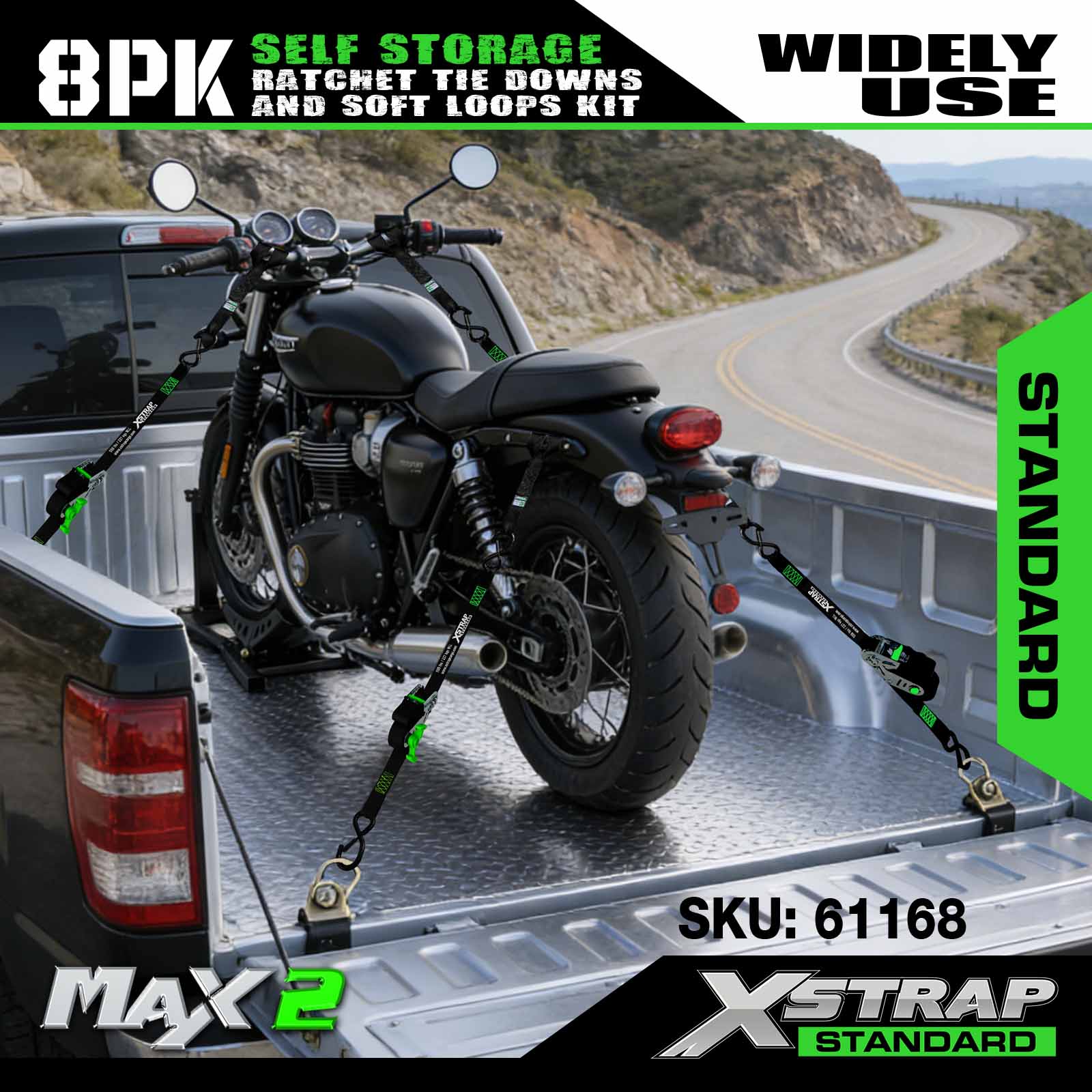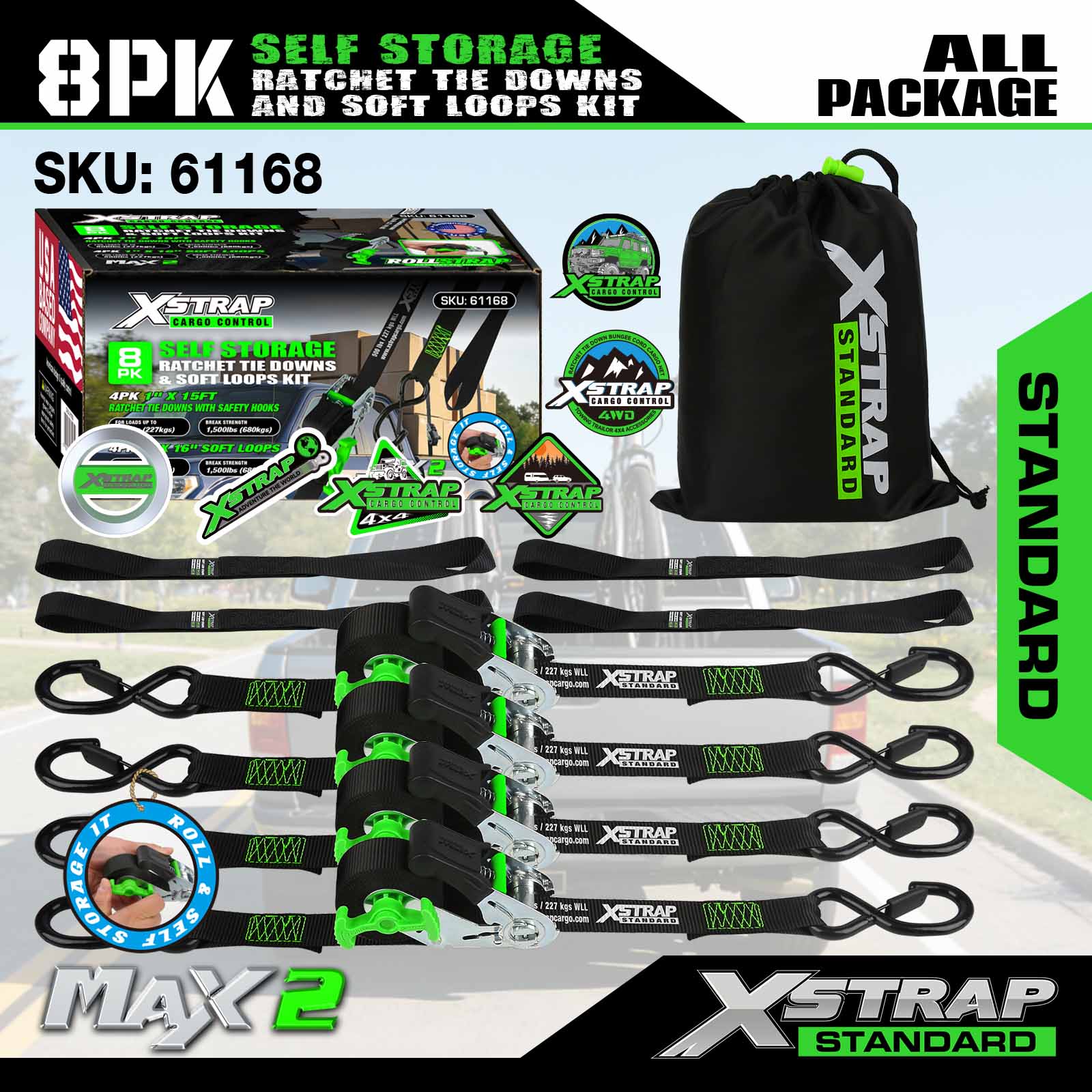 Ini ialah Xstrap 1”×15’ tali pengikat ratchet. Ia adalah set 4pk. Tali ratchet biasanya digunakan untuk bergerak, perkakas dan motosikal.