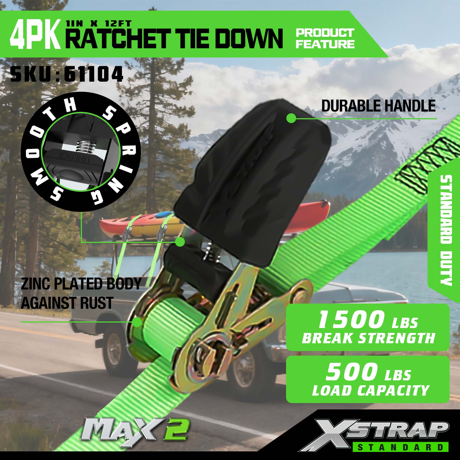 - Tahan Karat & Binaan Diperkukuh: Badan ratchet bersalut zink tahan kakisan, manakala anyaman 1 inci dengan jahitan silang tambahan meningkatkan kekuatan untuk kegunaan jangka panjang yang boleh dipercayai.