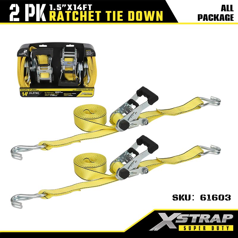 1-1/2” x 14’ 2PK Ratchet Tie Down