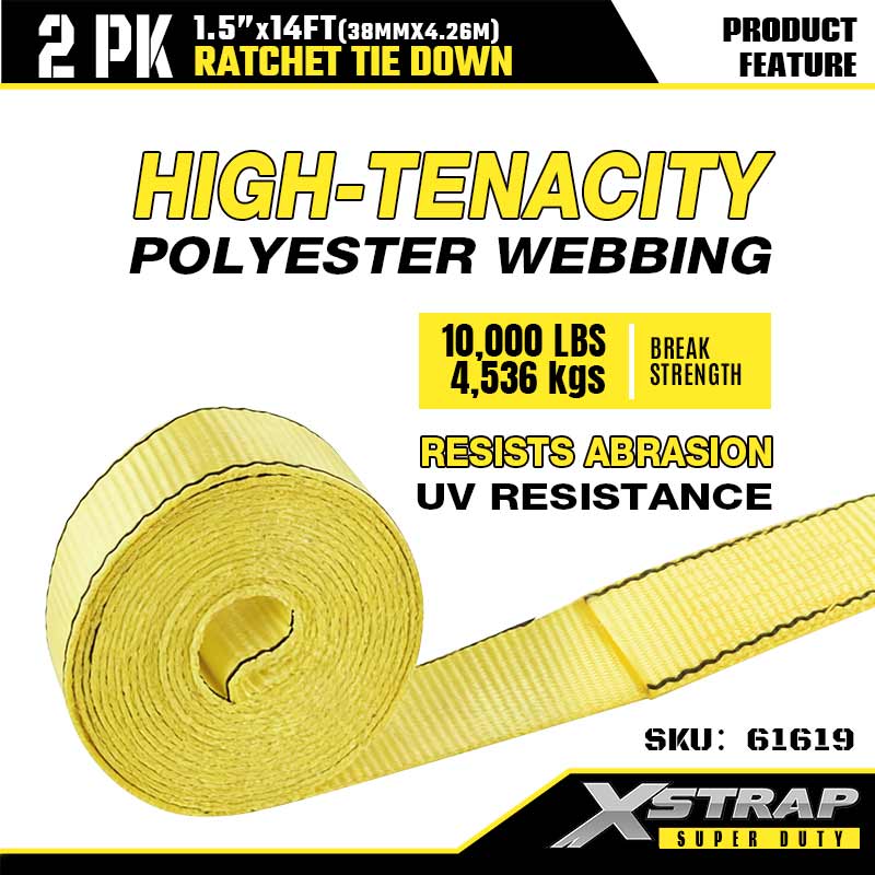 - Anyaman Poliester Ketahanan Tinggi: Anyaman poliester selebar 1.5 inci tahan goresan, regangan dan lelasan. Ia kalis UV untuk menahan matahari dan hujan, jadi ia kekal kuat untuk kegunaan jangka panjang di tapak kerja atau jalan belakang.